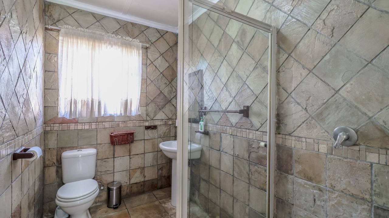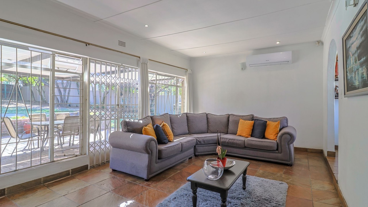 Step inside and enjoy a spacious, light-filled lounge featuring both a fireplace for winter evenings and air-conditioning for summer days. Sliding doors lead to a beautifully maintained garden with a sparkling swimming pool, patio, and braai area — an inviting space for weekend relaxation, entertaining, or sunny afternoons outdoors.