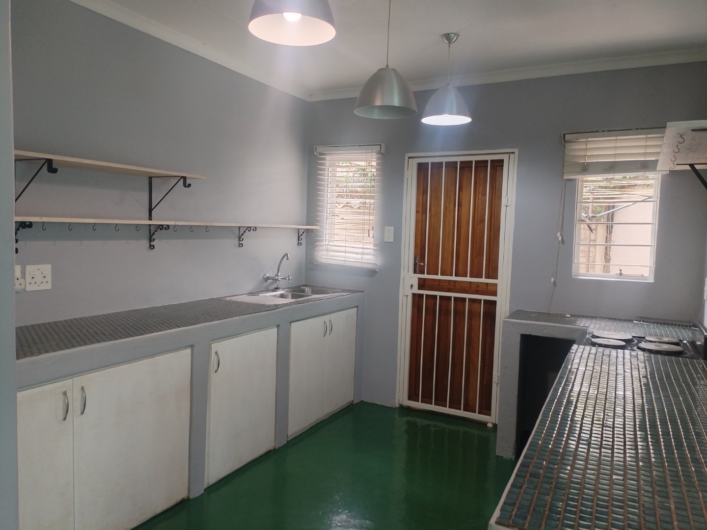 The cottage features an open-plan kitchen and lounge area, with a well-sized kitchen equipped with built-in cupboards. The spacious lounge provides ample room for both a sitting and dining area.
