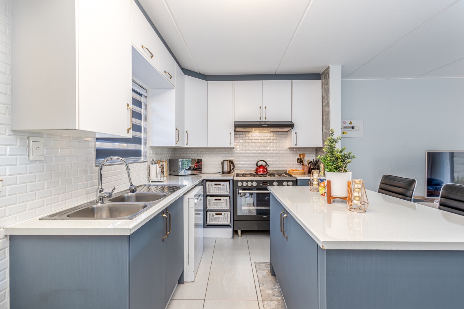The duplex unit offers a designer kitchen with space for a top loader & front loader/dishwasher and space for a single fridge. The kitchen is complete with a gas hob and electric oven.