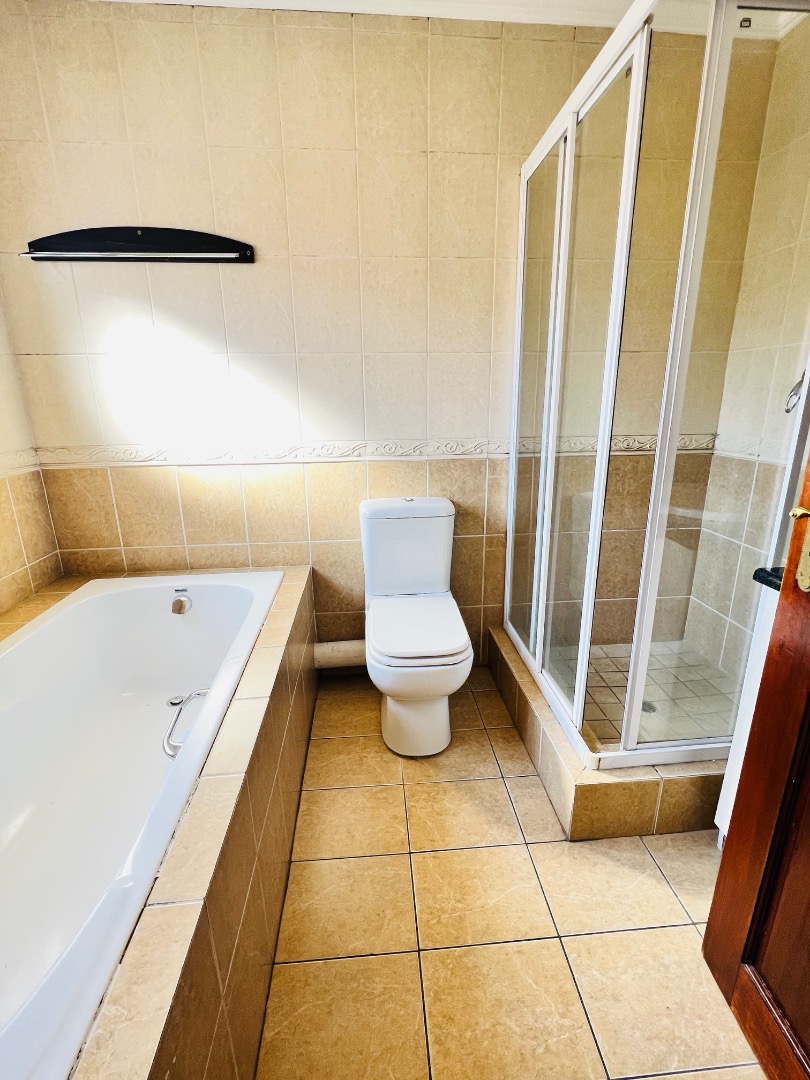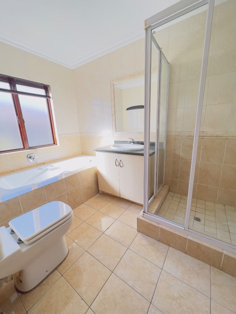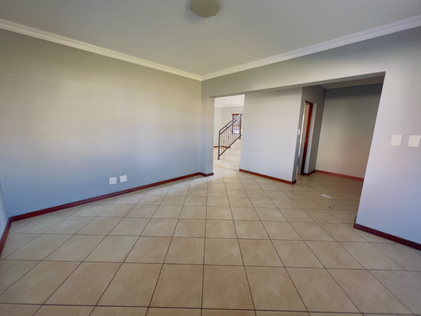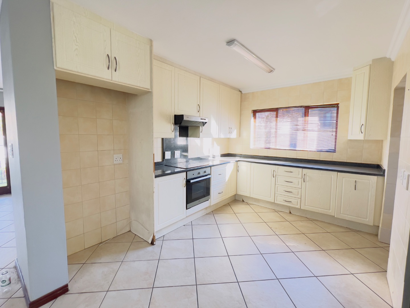 Discover this inviting 4-bedroom, 2.5-bathroom family home available for rent within the secure Honey Ridge Estate in Honeydew Ridge. This modern residence offers a comfortable and functional living environment, perfect for families seeking peace of mind and convenience. The interior boasts an open-plan layout, featuring two spacious lounges and a dedicated dining room, all adorned with easy-to-maintain tiled flooring and a neutral colour palette, providing a versatile canvas for your personal style. The well-appointed kitchen includes ample cream-coloured cabinetry, dark countertops, an integrated oven, hob, and extractor fan, complemented by a convenient pantry and scullery.