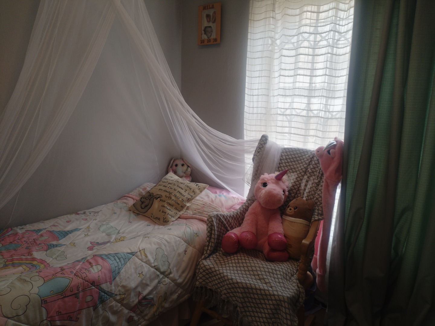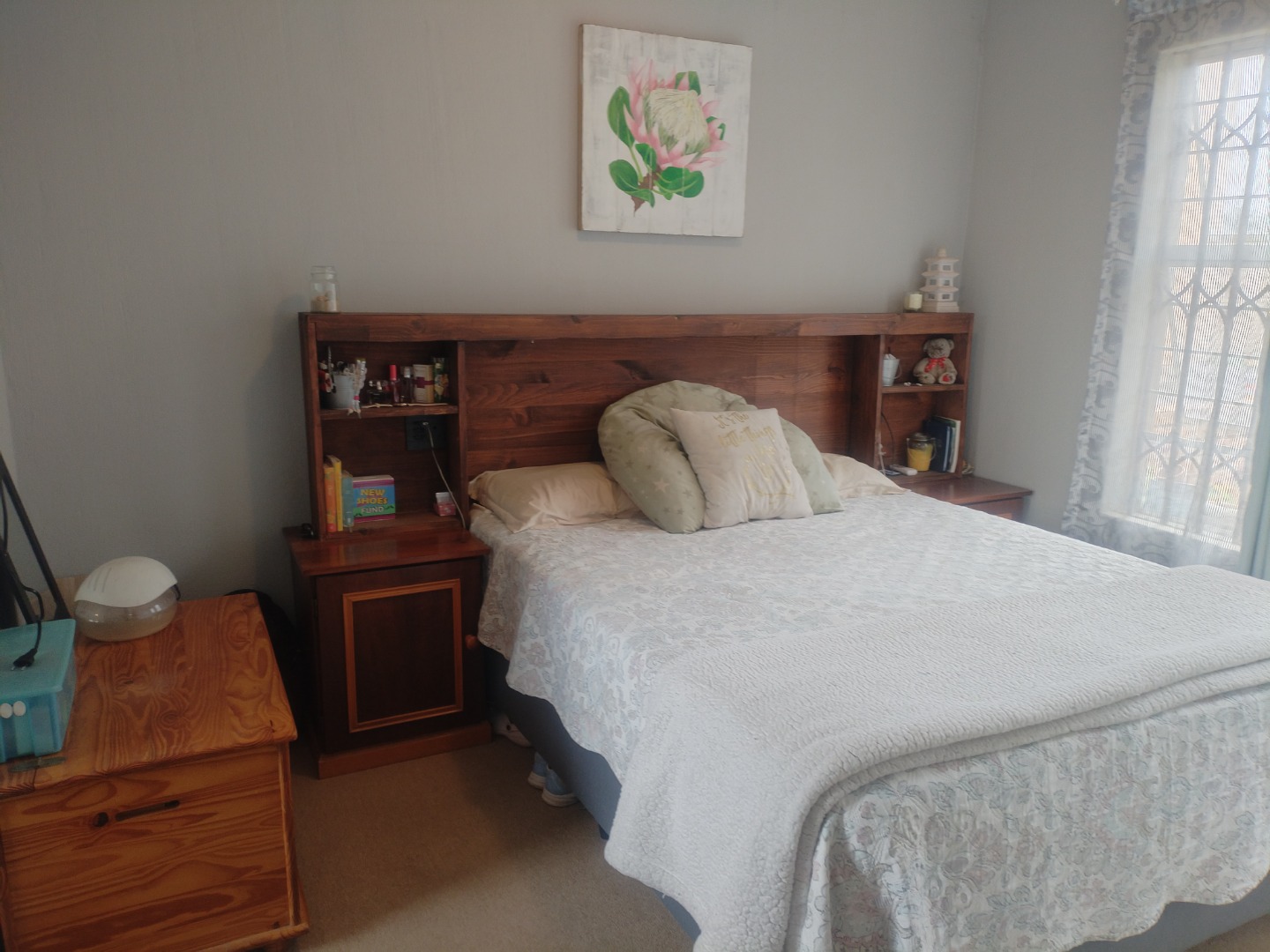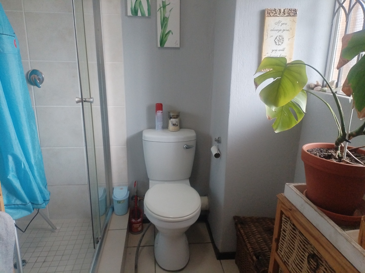 The open-plan kitchen is fitted with ample built-in cupboards and includes space for a washing machine and a single-door fridge. The spacious open-plan lounge flows seamlessly onto a covered patio, leading to a private yard — perfect for relaxing outdoors. All living areas and the kitchen are tiled.