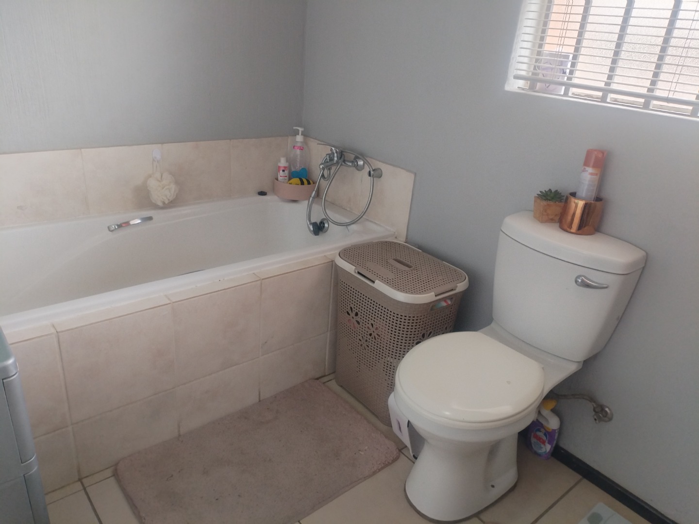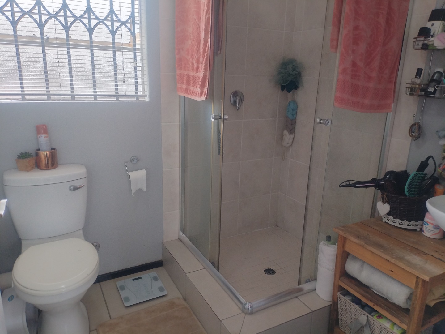 Both bedrooms feature built-in cupboards and are carpeted for added comfort. The en-suite bathroom is fully equipped with a bath, shower, toilet, and basin, while the second bathroom offers a shower, basin, and toilet.