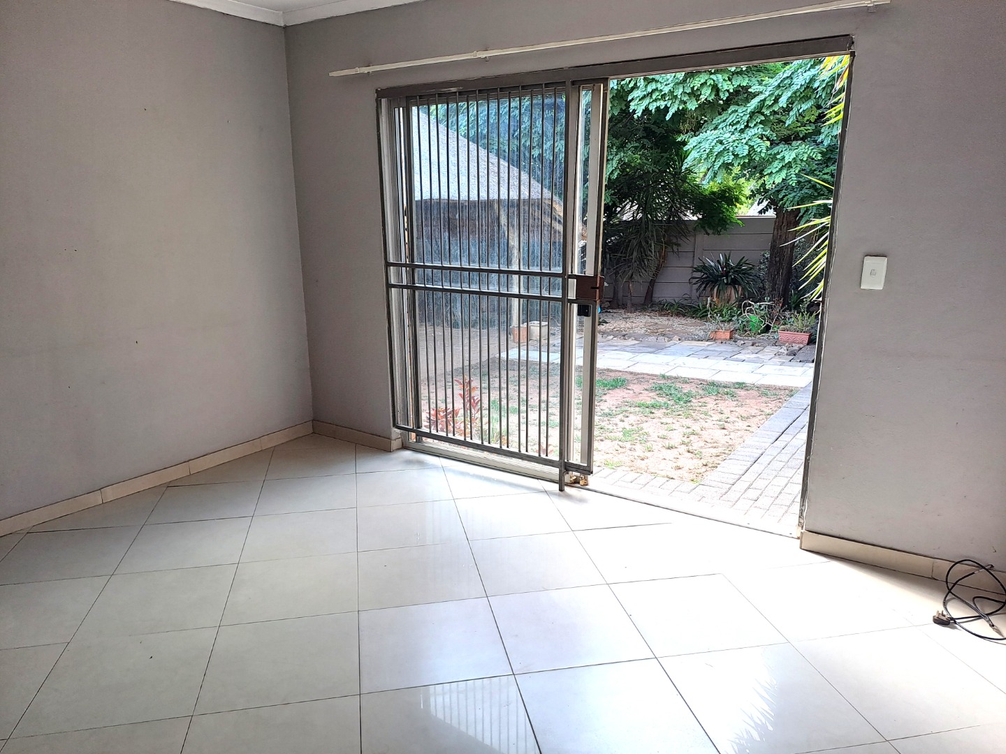 The open-plan kitchen flows into a nice size lounge area, leading out through a sliding door to a beautiful, established garden with a spacious lapa — ideal for entertaining or relaxing.