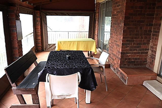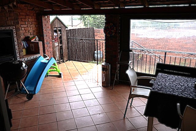 Enjoy the outdoors with a covered, tiled patio, perfect for relaxation or hosting, featuring a built-in braai and security railings.