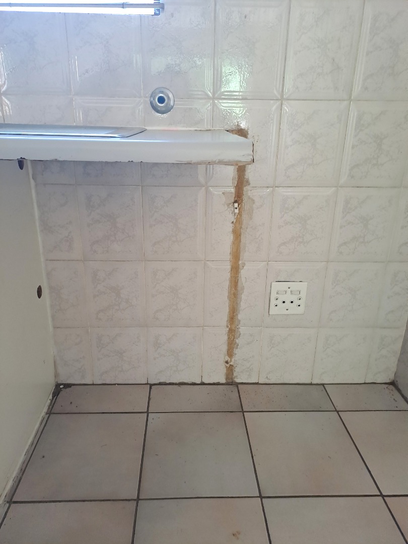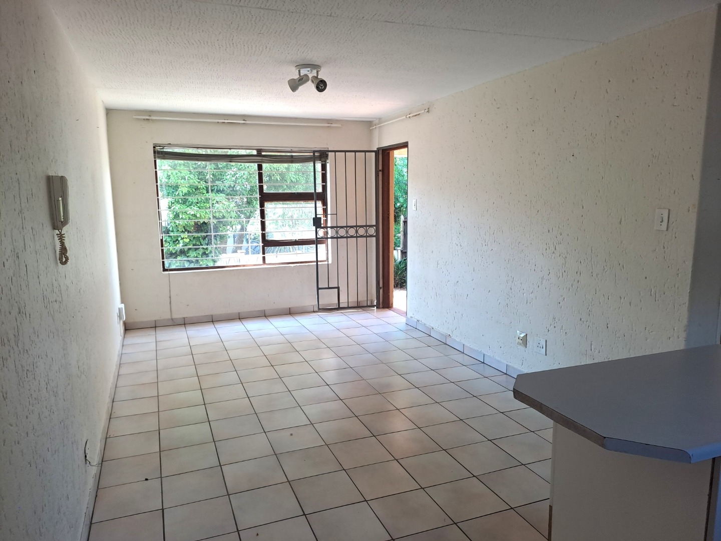 This inviting Ground Floor 1-bedroom, 1-bathroom apartment is situated within a secure complex in Weltevreden Park, Roodepoort. Designed for comfortable living, the unit features an open-plan lounge area with tiled flooring, providing a versatile space for relaxation. Natural light fills the living area through a large window, which is fitted with burglar bars for added peace of mind. An intercom system enhances convenience and security for residents.