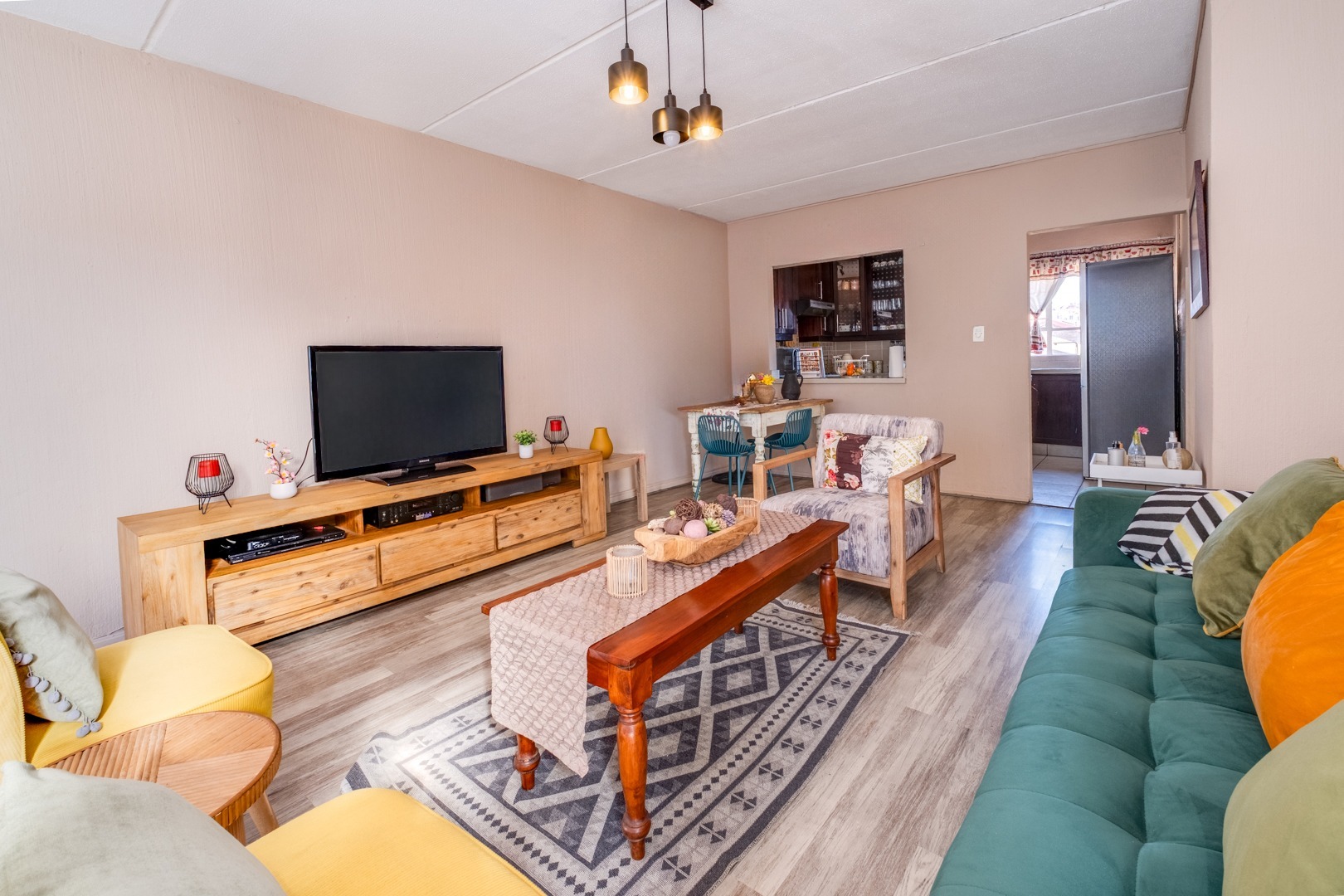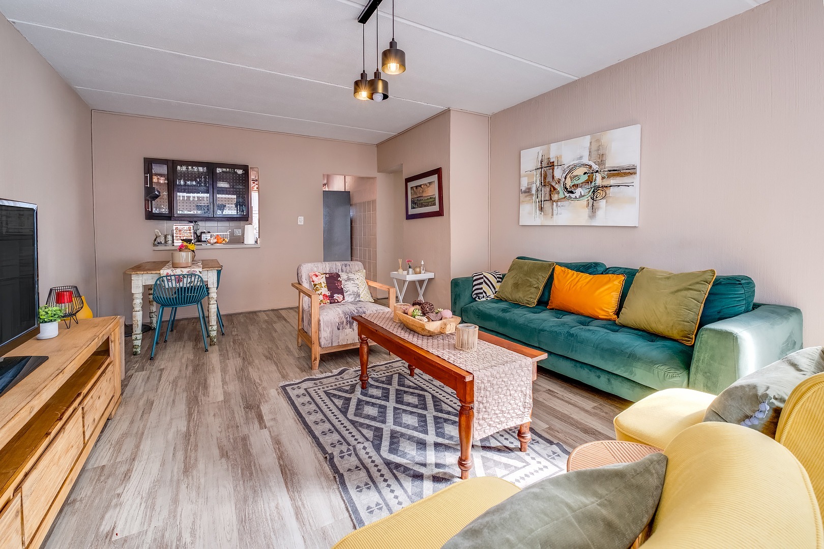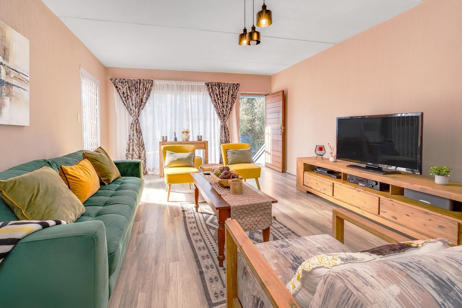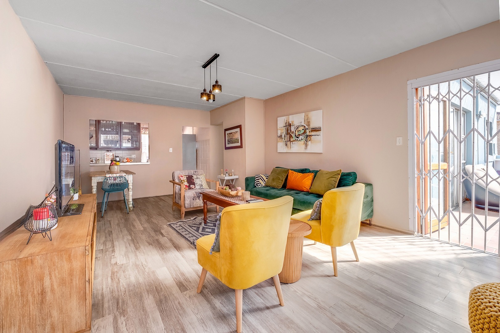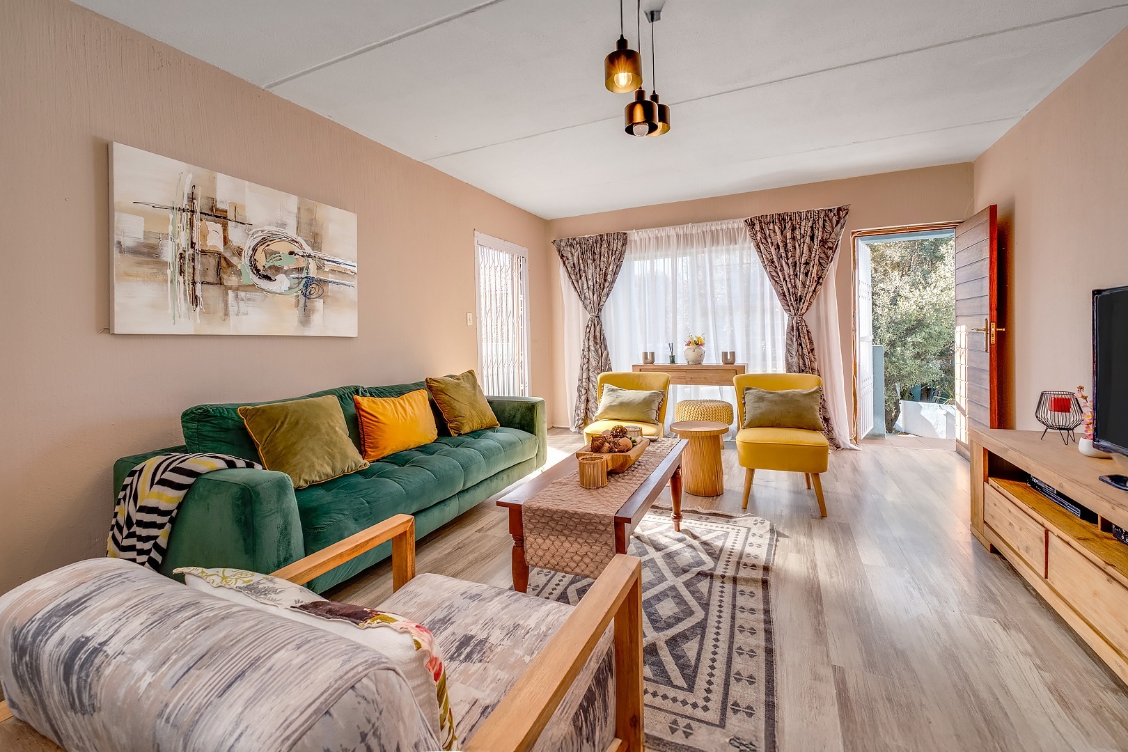 Open plan lounge/dining area that flows to a covered balcony with built in braai