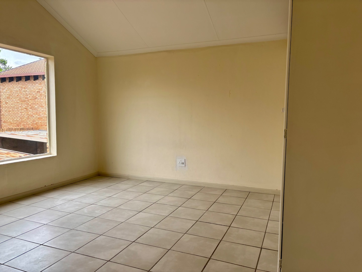 Parking is well-addressed with a dedicated garage and an additional parking bay. Enhanced security features include burglar bars on windows and an access gate for the complex, ensuring a secure living environment.
