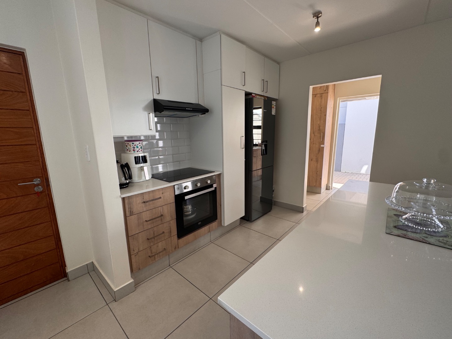 Discover modern living in this inviting 3-bedroom, 2.5-bathroom rental property within a secure Willow Grove estate in Wilgeheuwel. This contemporary cluster home offers a seamless open-plan layout, integrating a spacious lounge, dining area, and a stylish kitchen. The kitchen features white and wood-look cabinetry, ample countertop space, and integrated appliances including an gas hob and space for a double door fridge. A dedicated scullery provides additional convenience and outdoor access. The living space extends to a private covered patio, overlooking a private, easy-to-maintain garden, perfect for relaxation and entertaining.