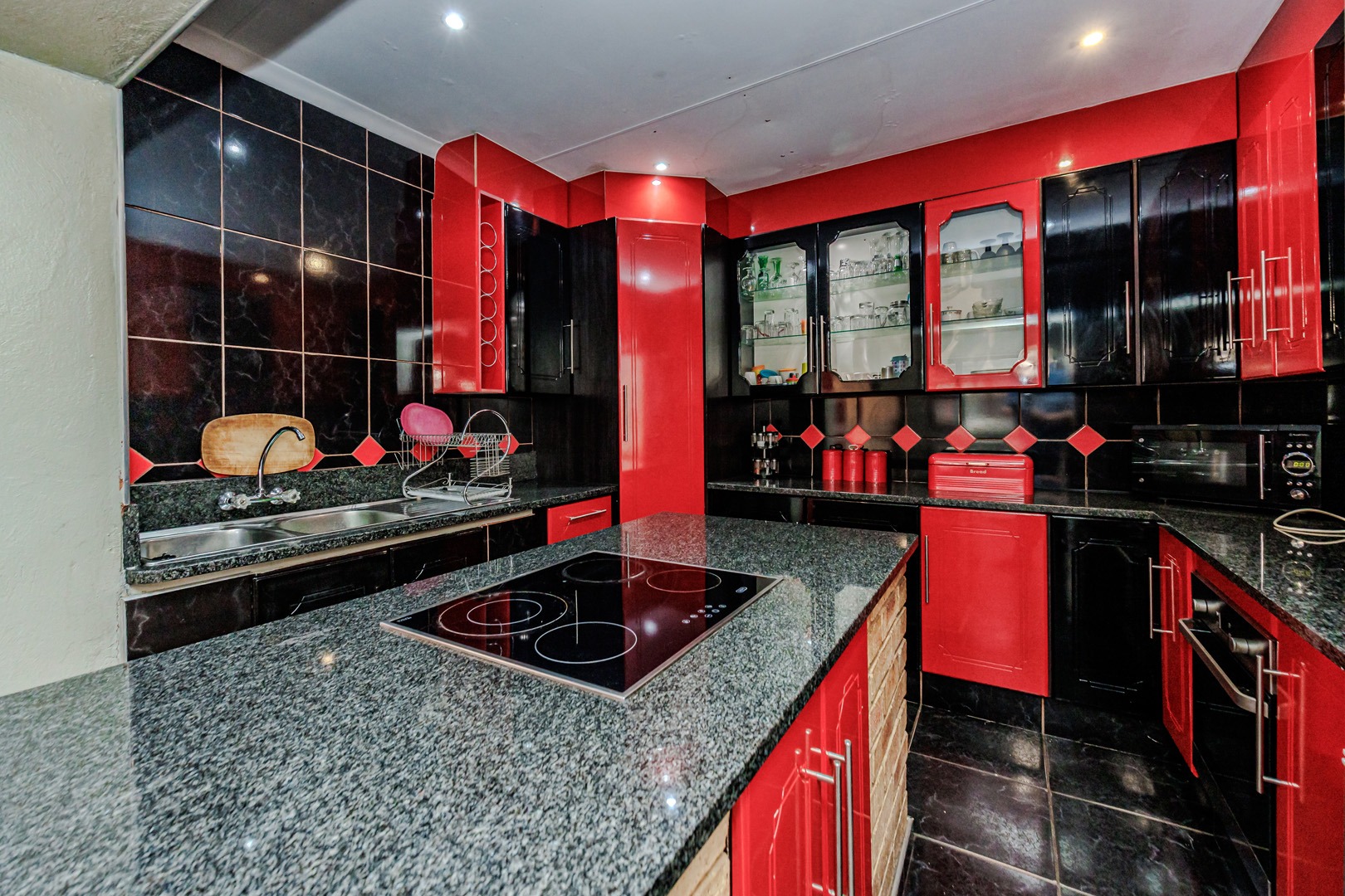 Step into this inviting 3-bedroom, 1-bathroom home available for rent in the lovely Witpoortjie, Roodepoort. The multi-zoned living area offers a flexible layout, perfect for relaxing or entertaining, and gets a good amount of natural light. You'll find a dedicated dining room, great for family meals. The kitchen is a real standout, boasting a modern red and black design with sleek granite countertops, a central island with an integrated hob, and built-in oven and microwave – a dream for anyone who loves to cook!