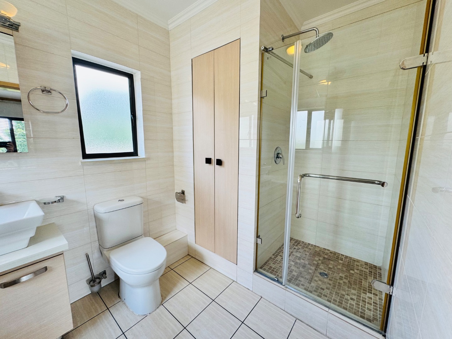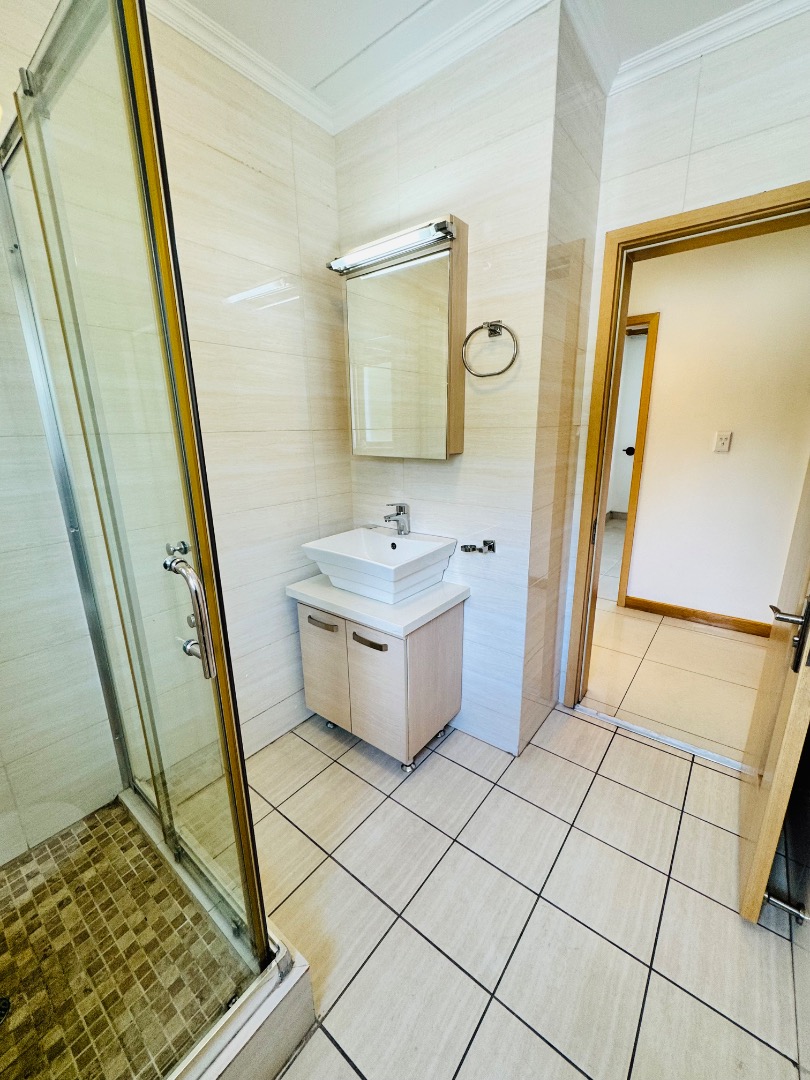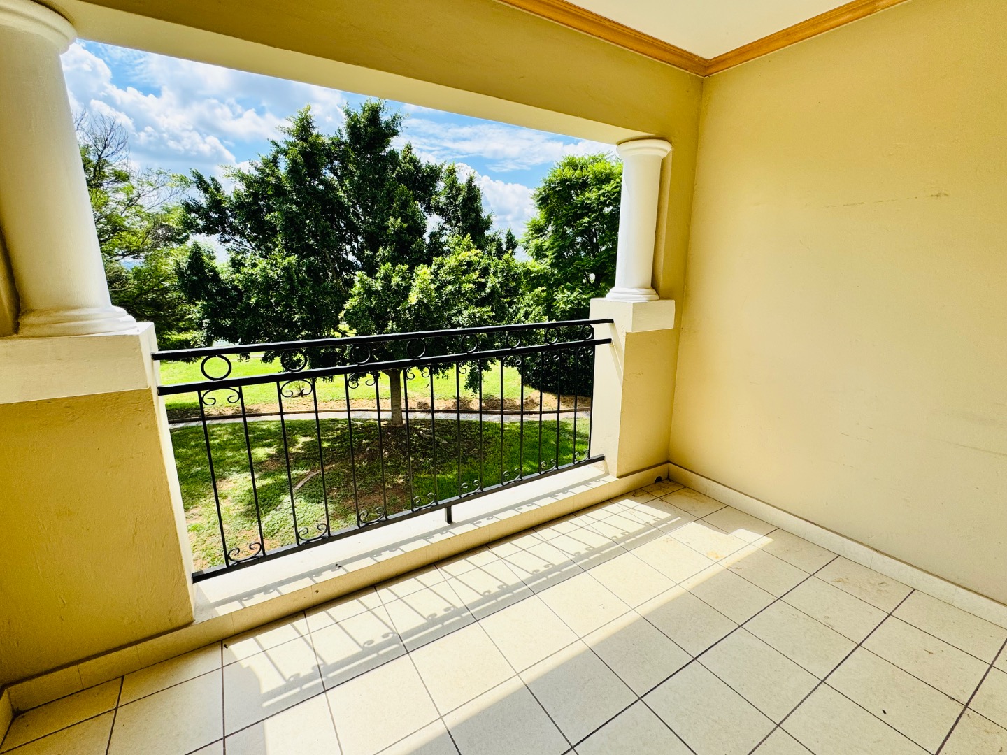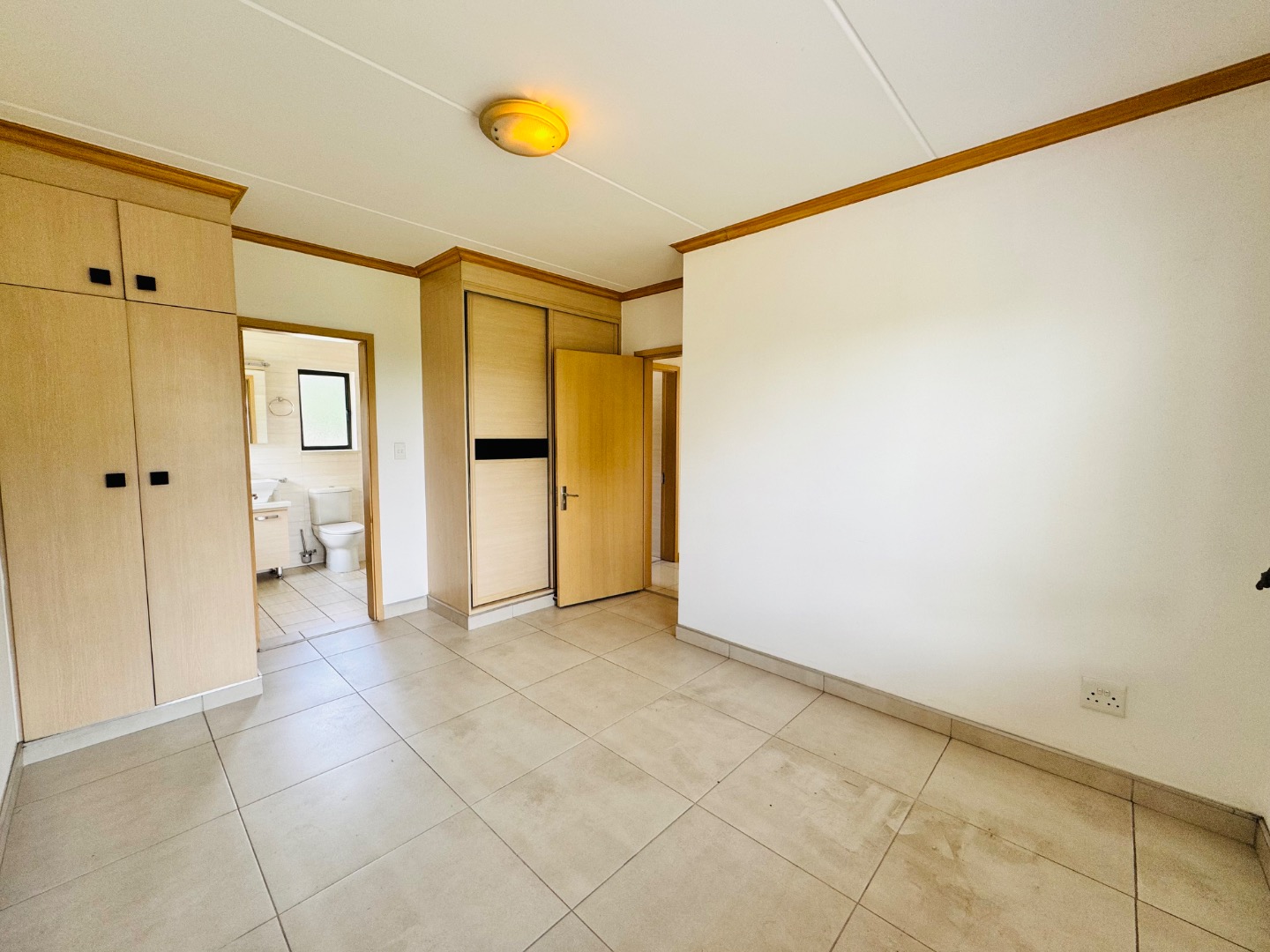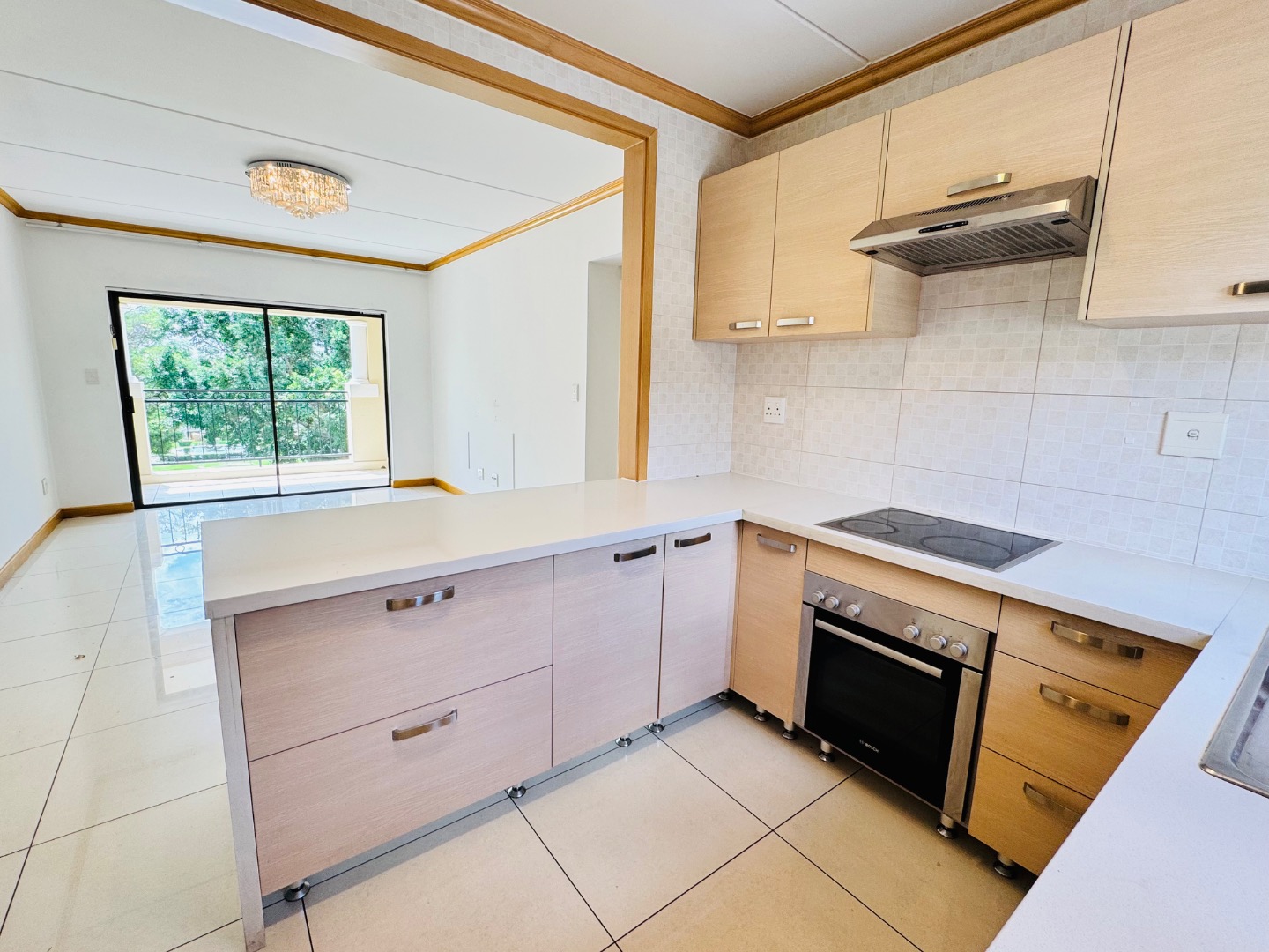 Discover modern living in this inviting 2-bedroom, 2-bathroom apartment located within the secure Groveacres Estate in Broadacres, Sandton. This unfurnished residence features an open-plan layout, seamlessly connecting the bright living area with a contemporary kitchen. The kitchen is well-appointed with built-in appliances, including an oven, hob, and extractor fan, complemented by sleek tiled flooring throughout the main living spaces. Large sliding glass doors lead to a private balcony, offering tranquil green views and abundant natural light.
