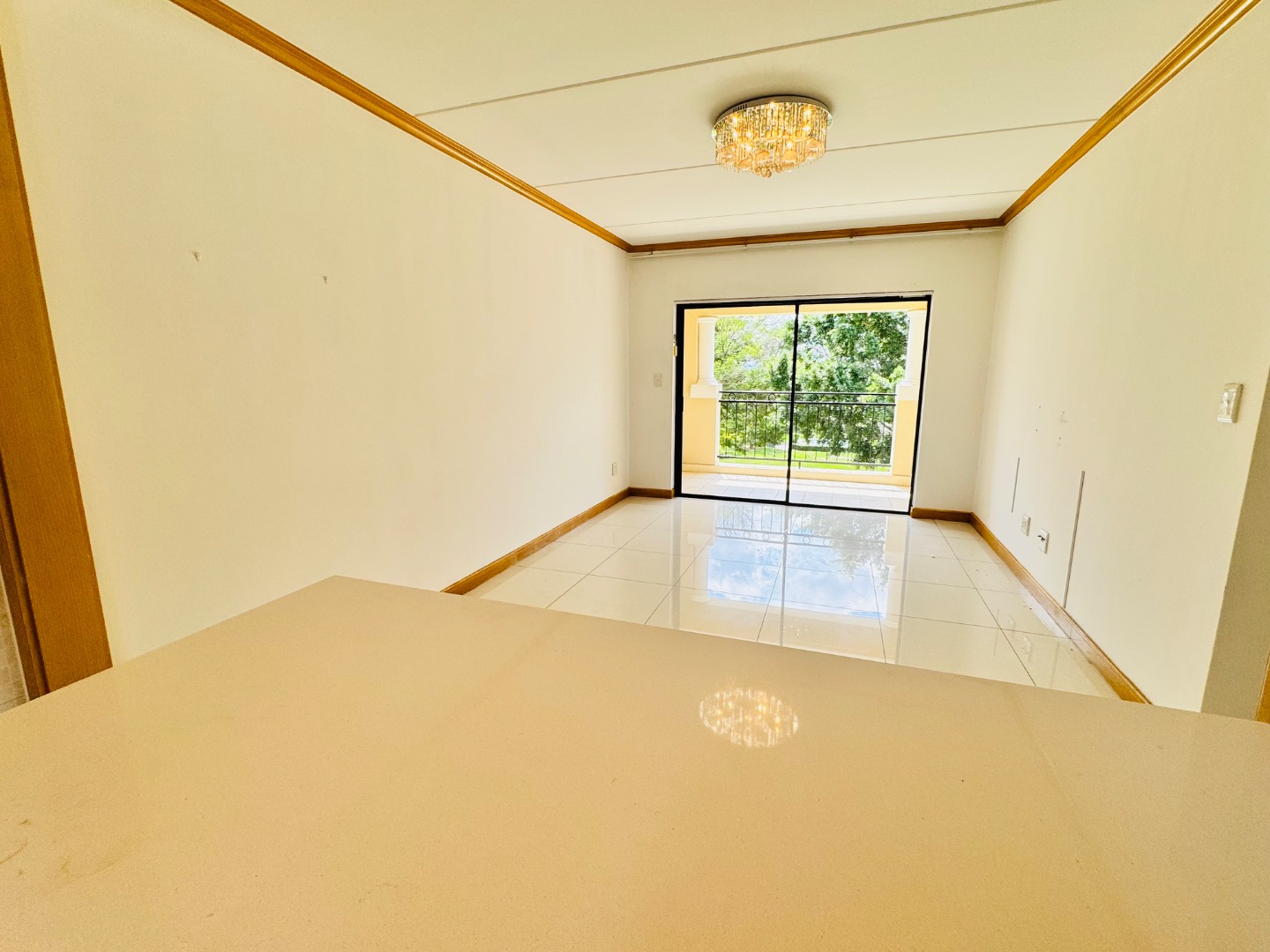 Discover modern living in this inviting 2-bedroom, 2-bathroom apartment located within the secure Groveacres Estate in Broadacres, Sandton. This unfurnished residence features an open-plan layout, seamlessly connecting the bright living area with a contemporary kitchen. The kitchen is well-appointed with built-in appliances, including an oven, hob, and extractor fan, complemented by sleek tiled flooring throughout the main living spaces. Large sliding glass doors lead to a private balcony, offering tranquil green views and abundant natural light.