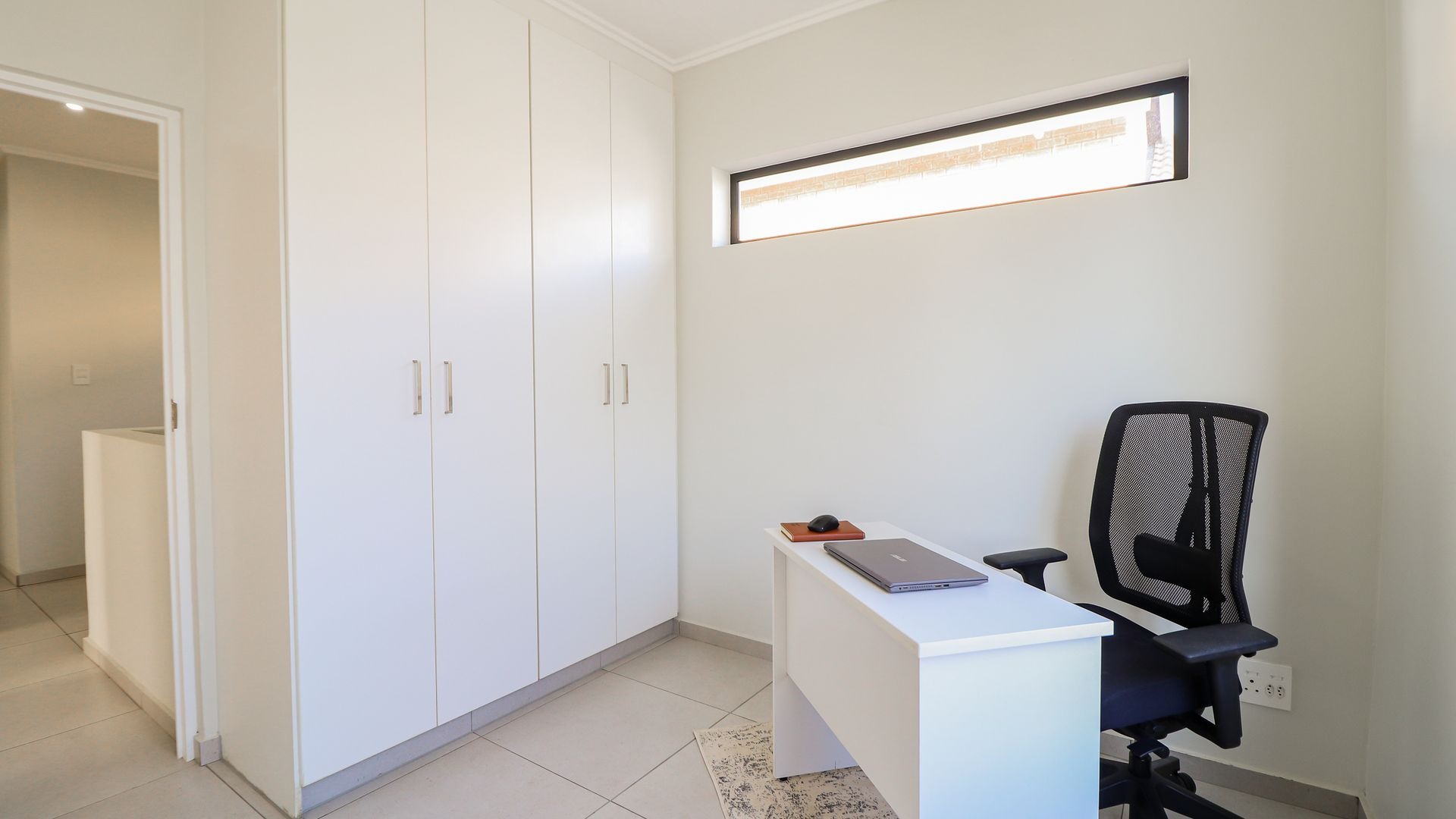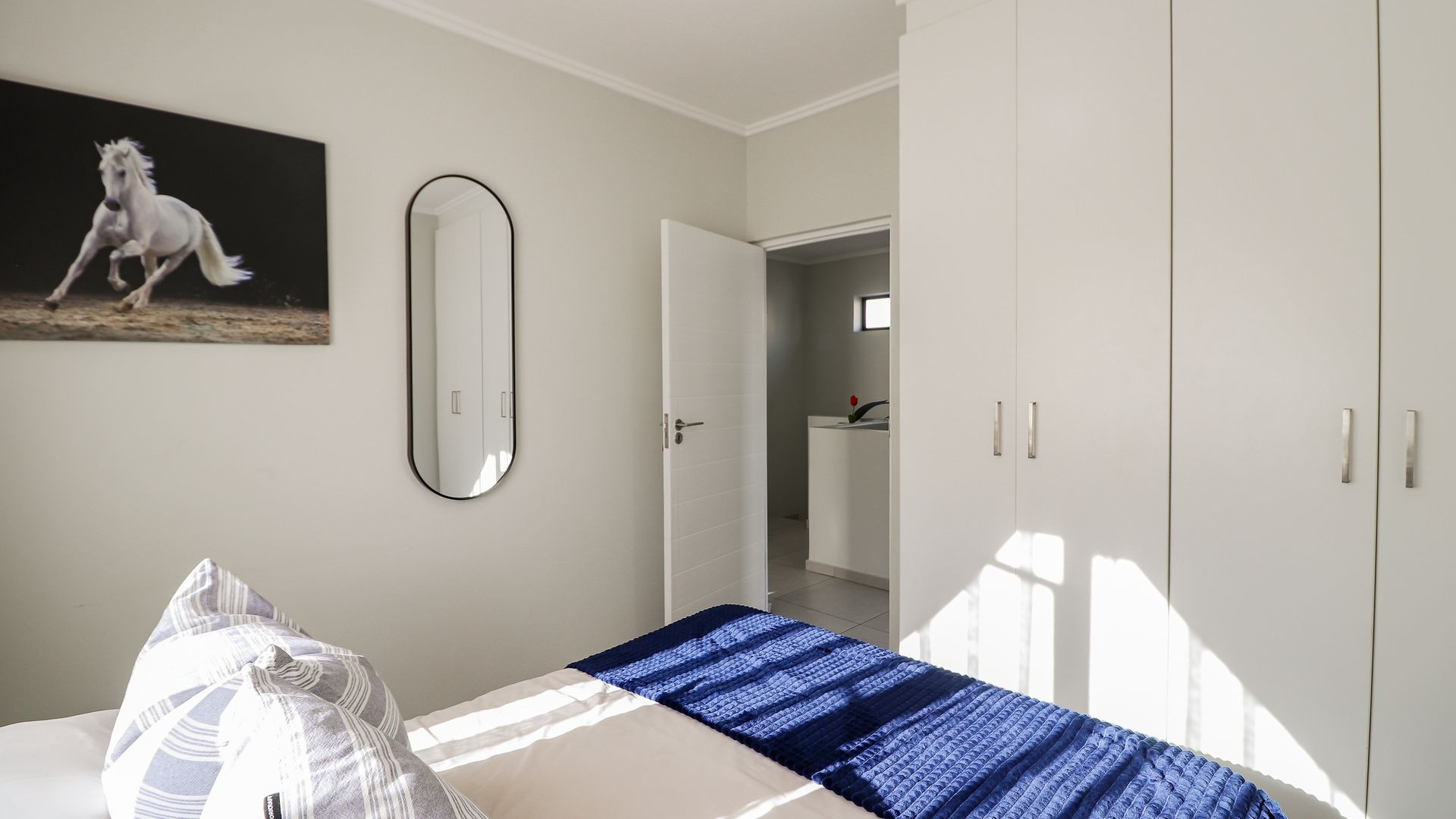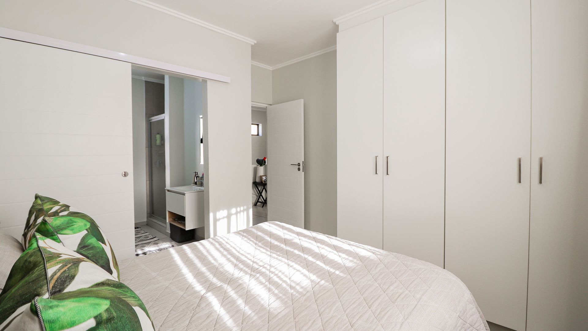 Outdoor living is enhanced by a private patio, perfect for enjoying the South African climate, overlooking a manageable garden space. Parking is well catered for with two garages and two additional parking bays, ensuring secure accommodation for vehicles. The property is also wheelchair-friendly, adding to its accessibility.