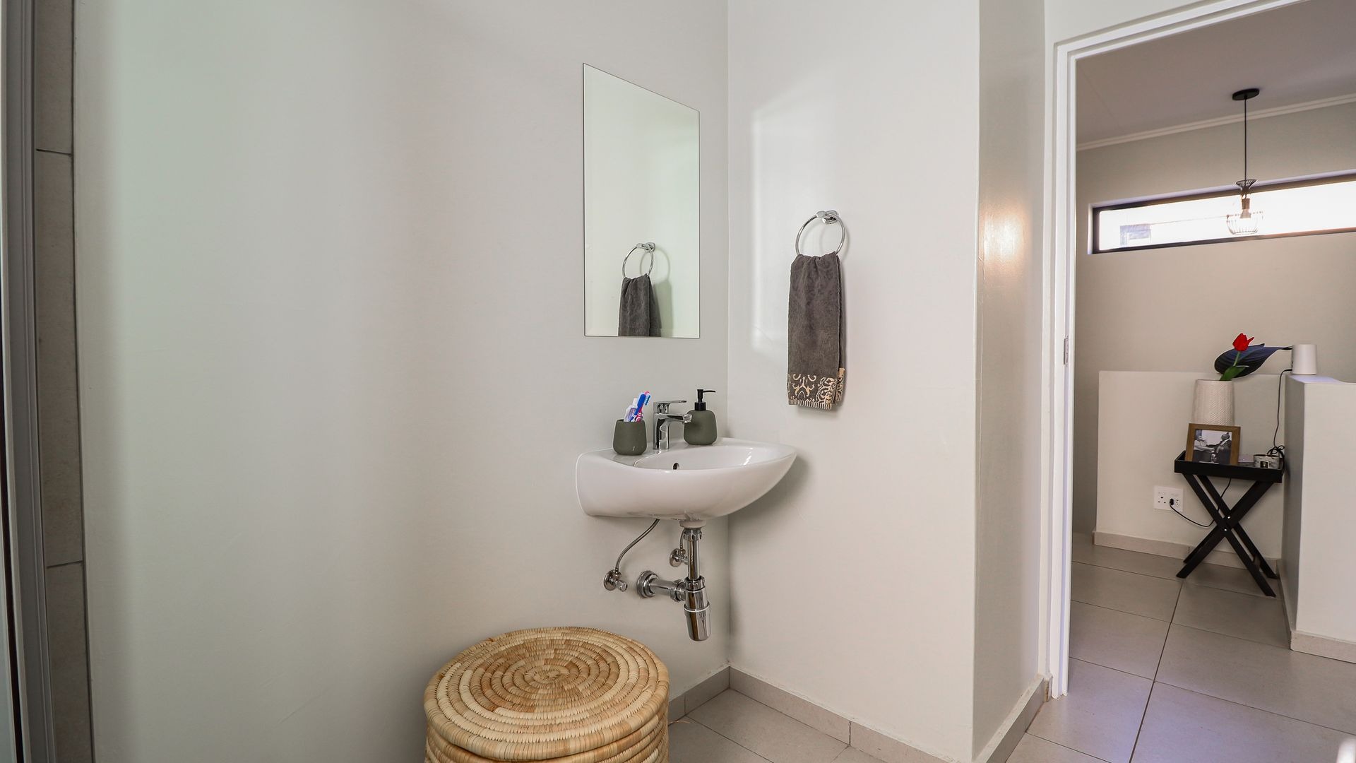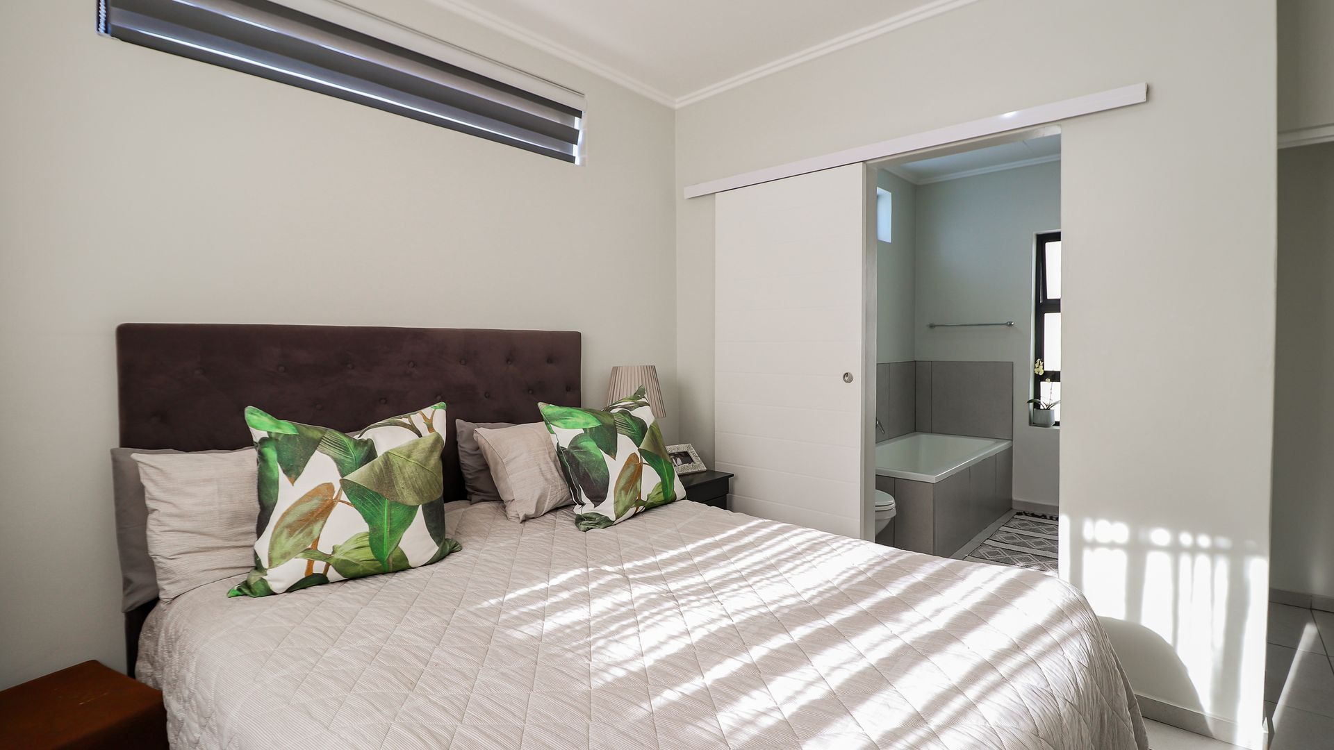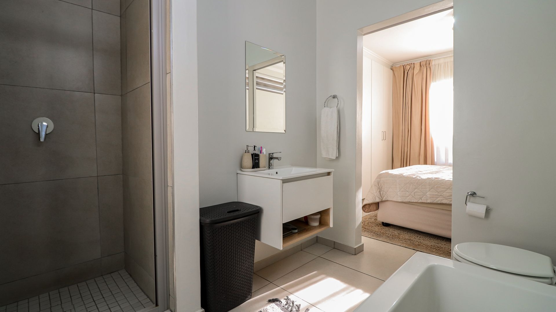 Outdoor living is enhanced by a private patio, perfect for enjoying the South African climate, overlooking a manageable garden space. Parking is well catered for with two garages and two additional parking bays, ensuring secure accommodation for vehicles. The property is also wheelchair-friendly, adding to its accessibility.