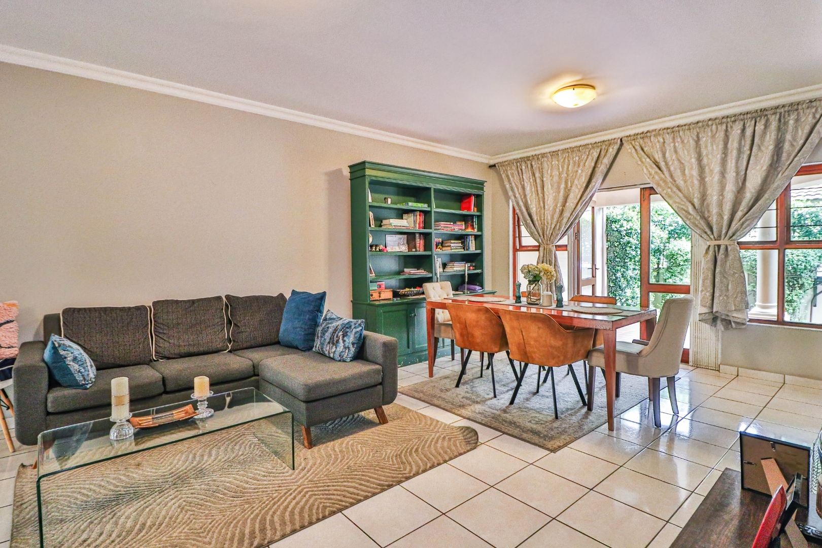 An open living area flowing onto a covered patio
