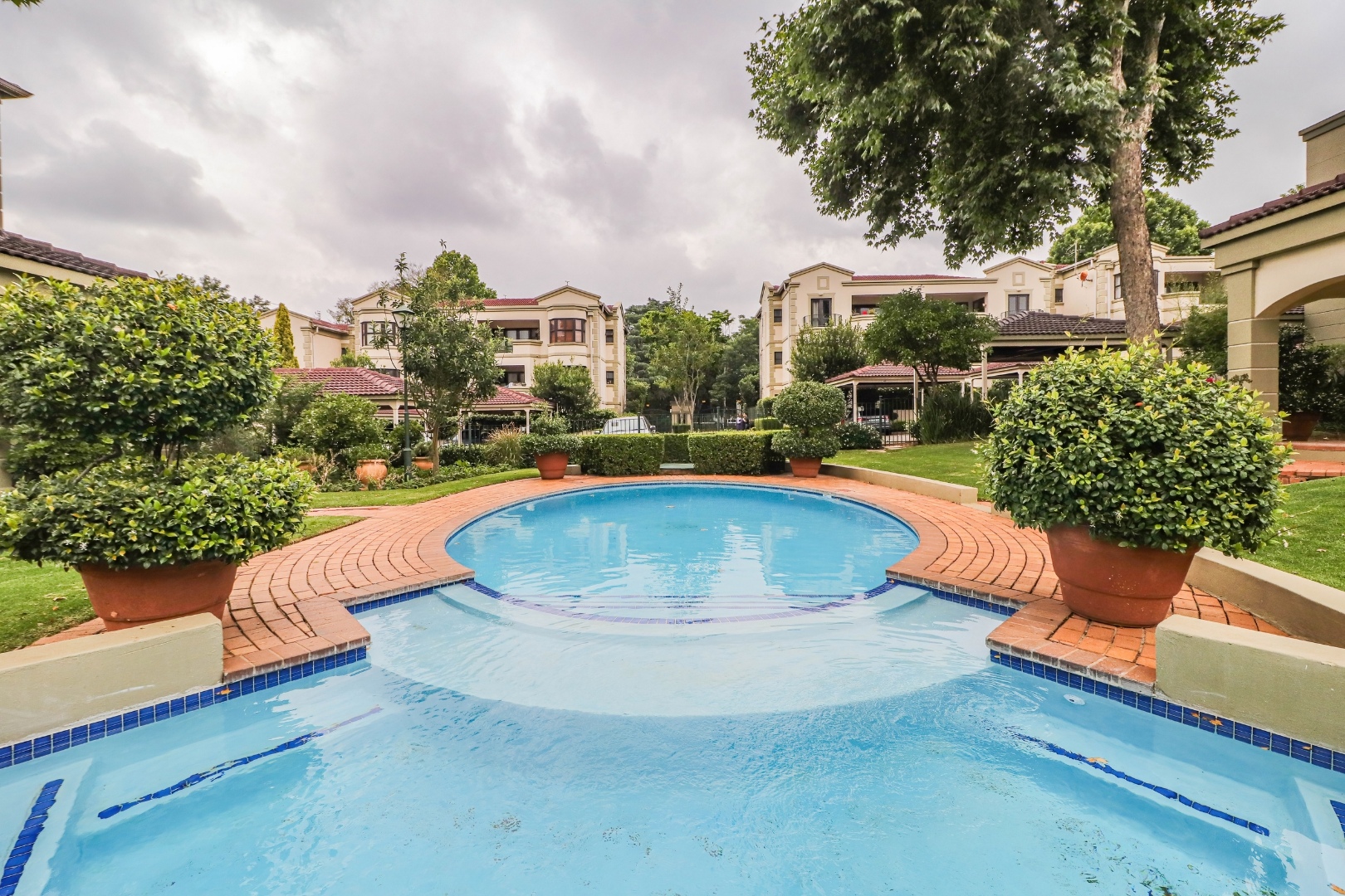 A sparkling complex pool with 24 Hour guarded security