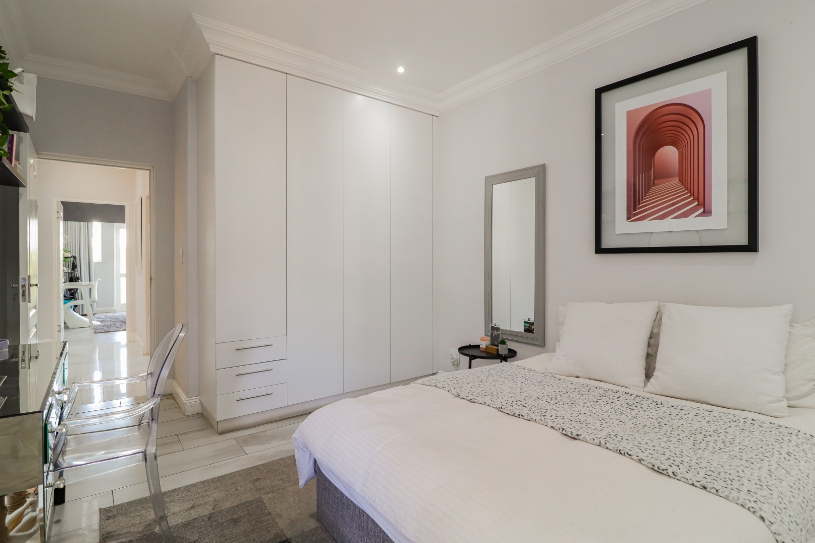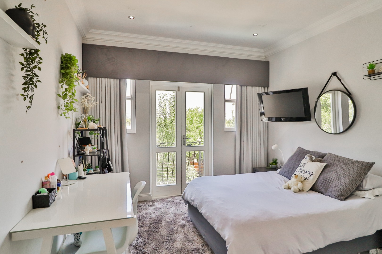 The heart of this home unfolds into two distinct lounges and a dedicated dining area, providing ample space for both intimate gatherings and grand entertaining. A well-appointed kitchen, designed for culinary excellence, with gas stove and place for double fridge and 3 appliances, complements the living spaces. These interiors effortlessly transition to the outdoors, inviting residents to embrace the serene Bryanston climate from a private balcony and a charming patio, perfect for al fresco moments.