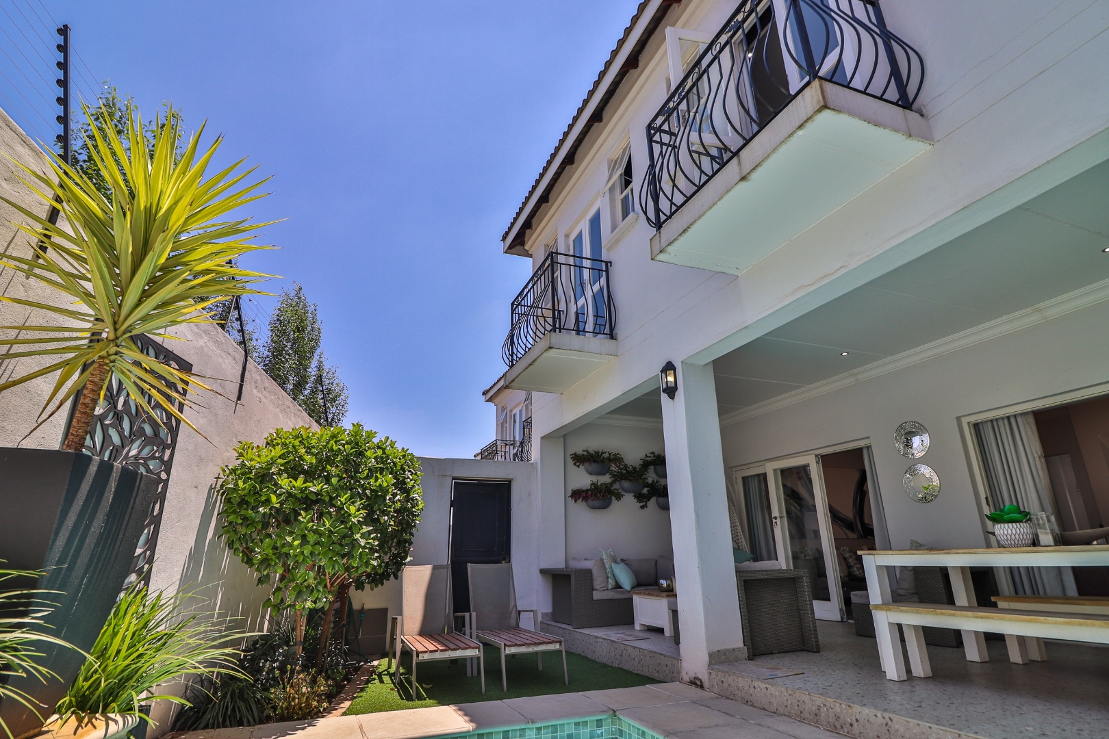 Step into a realm of refined living within this classic 3-bedroom, 3.5-bathroom townhouse, gracefully situated in a coveted Bryanston complex. The elegant entrance hall sets a sophisticated tone, leading into an expansive open-plan design that seamlessly blends comfort with contemporary luxury. With a generous 285 sqm of meticulously designed space, this residence offers an immediate sense of grandeur and tranquility.