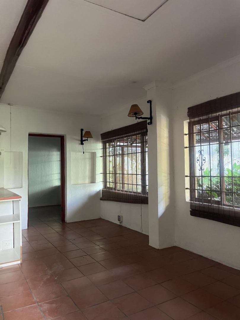 Discover a charming rental opportunity in the sought-after suburban area of Edenburg, Sandton. This inviting 60 sqm residence offers a comfortable and private living space, ideal for a single professional or a couple. The interior features practical terracotta tile flooring throughout, complemented by white walls and an exposed wooden beam in one of the living areas, adding a touch of character. The layout includes a dedicated lounge, a separate dining room, and a functional kitchen equipped with ample white cabinetry, reddish-brown countertops, and an electric stove, catering to everyday culinary needs. A convenient laundry facility is also available. The property comprises one well-proportioned bedroom and a full bathroom, alongside an additional guest toilet for added convenience. Large windows and an open doorway ensure abundant natural light fills the living spaces, offering pleasant views of the lush, mature garden outside. This pet-friendly home provides direct access to a verdant outdoor area, complete with a charming brick pathway, creating a serene and natural environment. Security is well-addressed with features such as an alarm system, electric fencing, a security post, an access gate, and a security gate, ensuring peace of mind. The residence is also fibre-ready, providing high-speed internet connectivity. With a generous erf size of 2801 sqm, the property offers a sense of space and privacy within a bustling metropolitan setting. One dedicated parking bay is included. Edenburg, located in Sandton, is a well-established suburban node known for its accessibility and convenience. It offers a balanced lifestyle with proximity to essential amenities and major transport routes, making it a desirable location for residents seeking both tranquility and urban connectivity. Key Features: * 1 Bedroom, 1 Bathroom * Guest Toilet * Lounge & Dining Room * Functional Kitchen * Laundry Facility * Pet-Friendly * Lush Garden & Paving * Alarm System & Electric Fencing * Fibre Ready * 1 Parking Bay