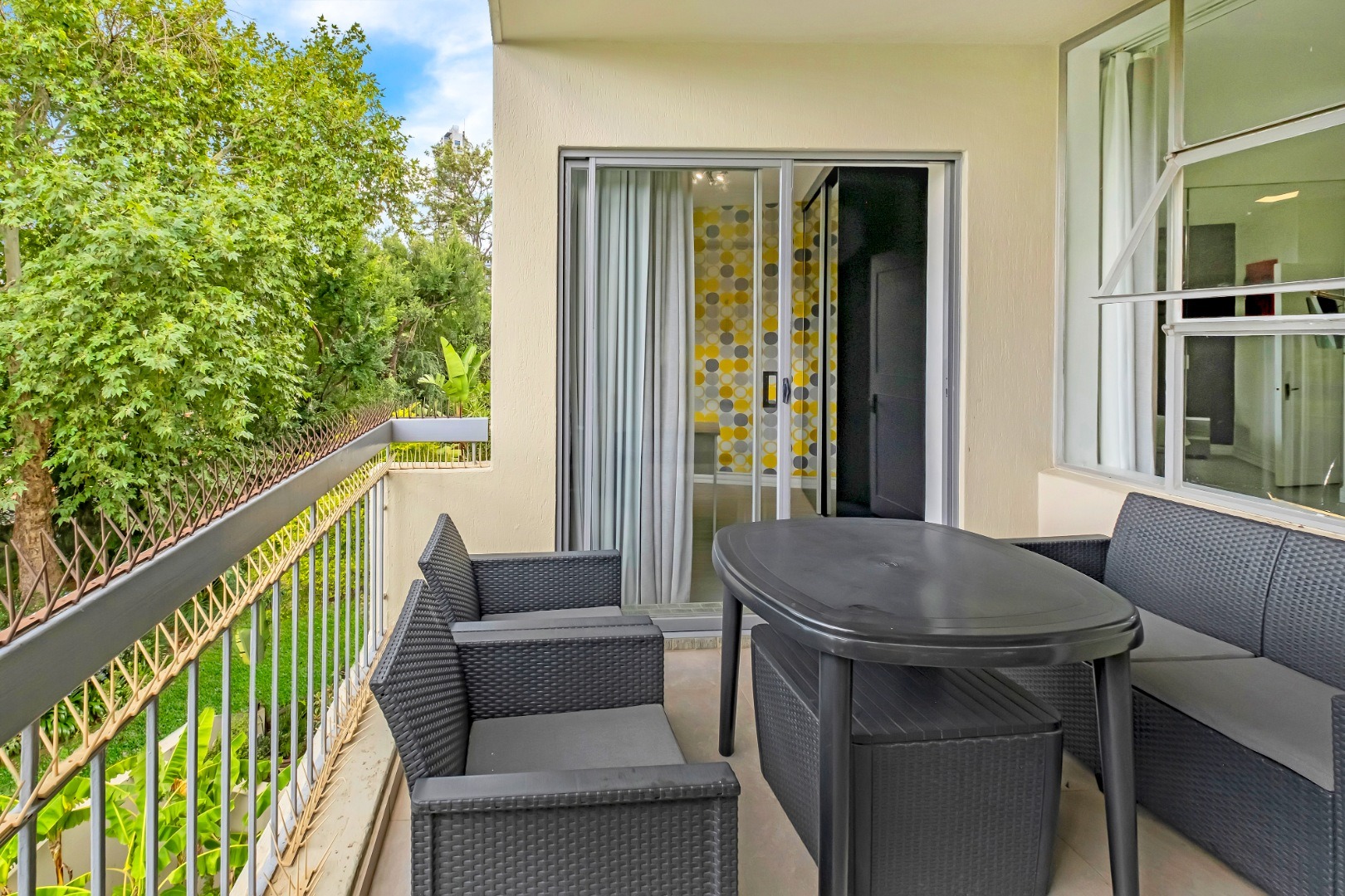 Beautiful, peaceful and private apartment with cosy balcony and delightful garden views in a popular and very well-maintained complex in Sandhurst, within walking distance of Sandton City and Nelson Mandela Square.