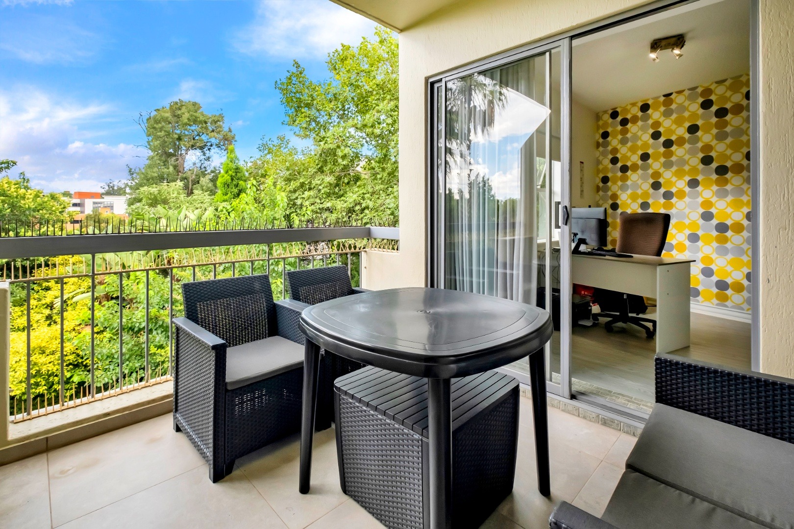 Beautiful, peaceful and private apartment with cosy balcony and delightful garden views in a popular and very well-maintained complex in Sandhurst, within walking distance of Sandton City and Nelson Mandela Square.