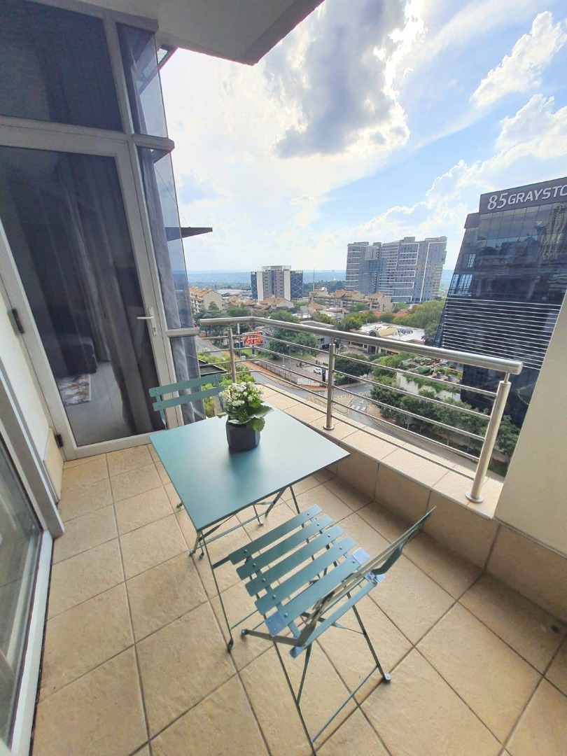 This upmarket apartment with amazing views of the Sandton skyline is perfect for a lock up and travel lifestyle.