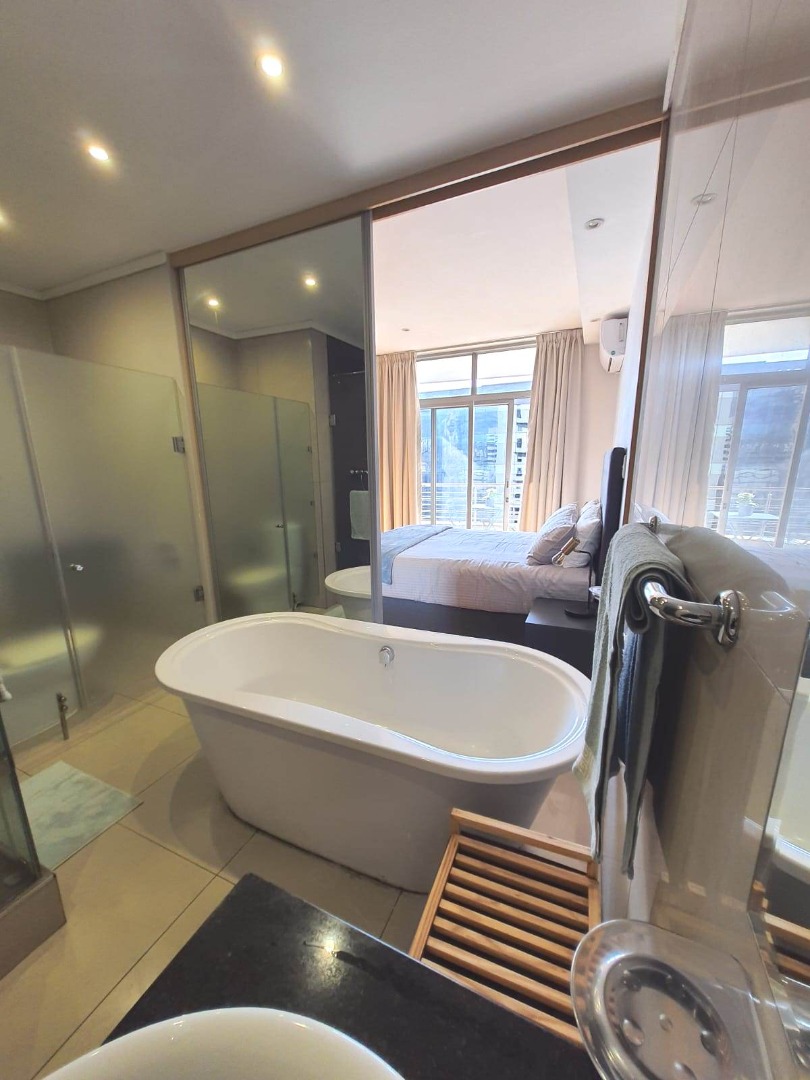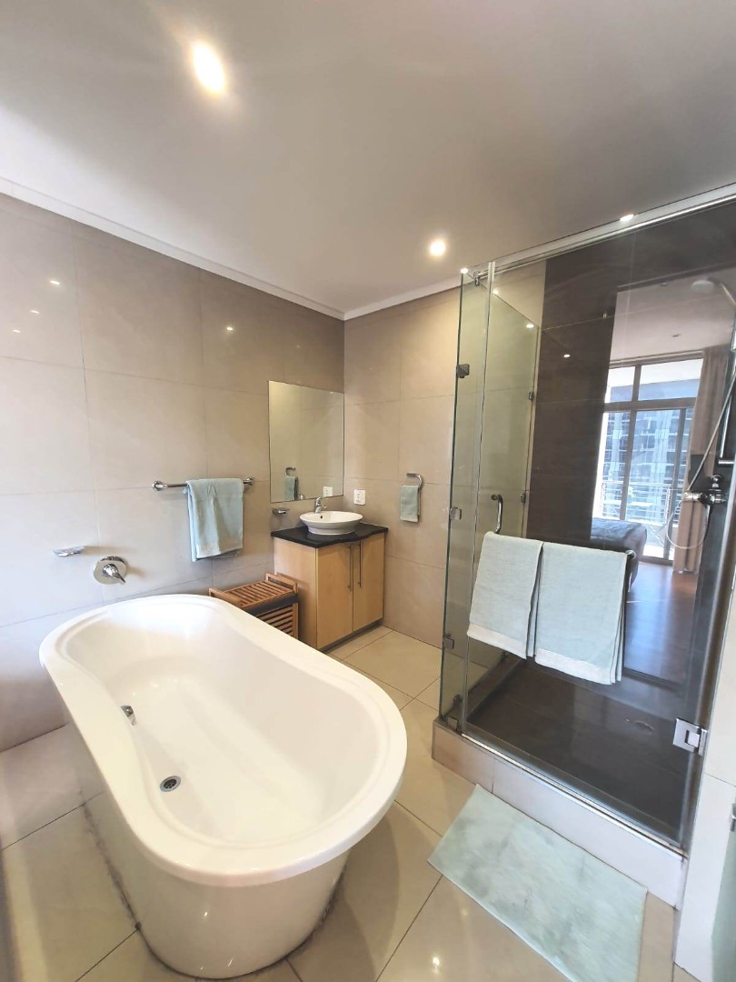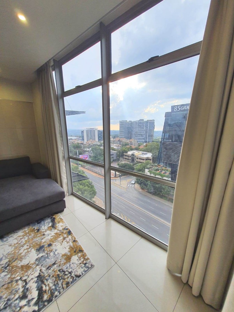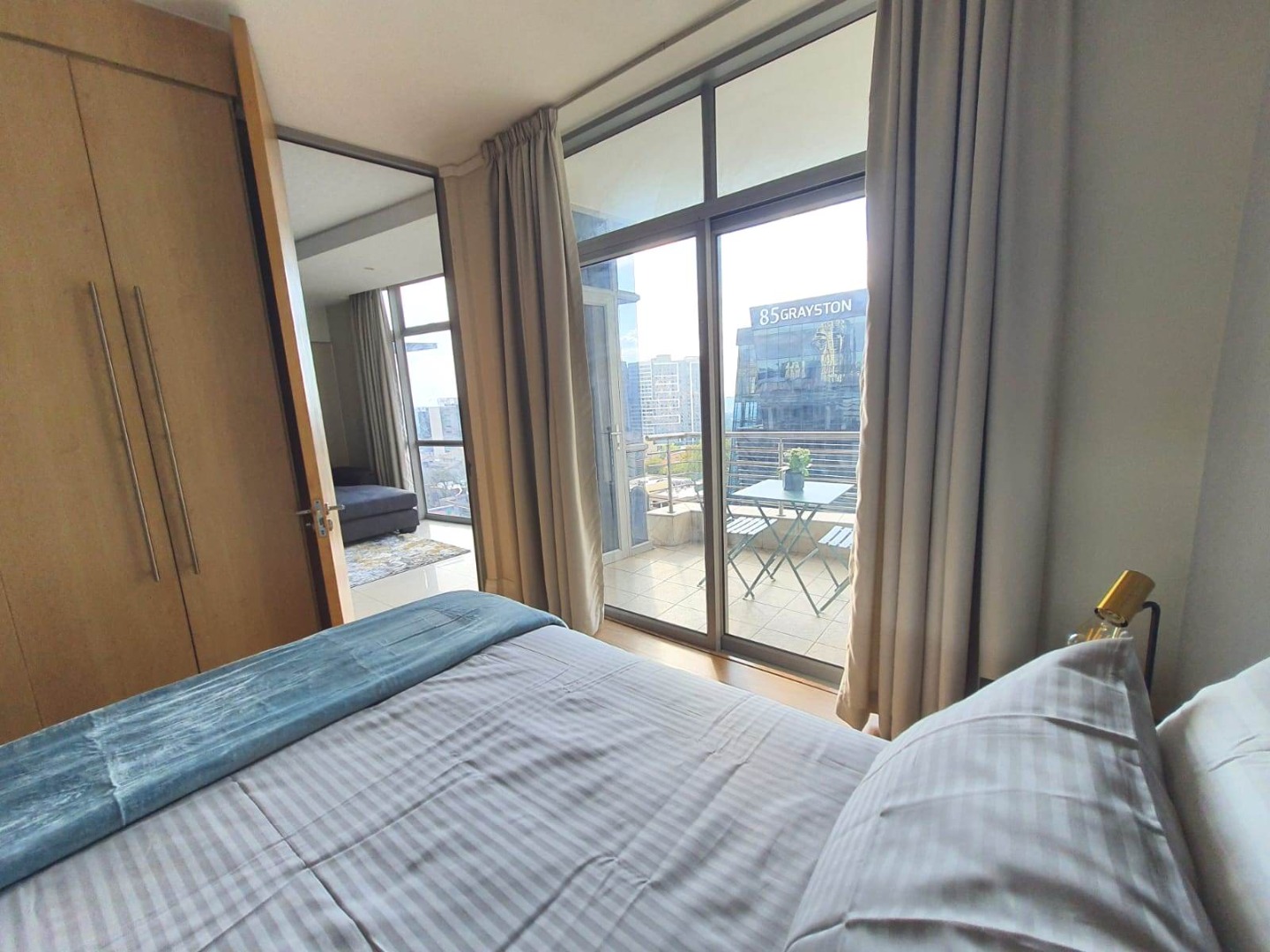This upmarket apartment with amazing views of the Sandton skyline is perfect for a lock up and travel lifestyle.