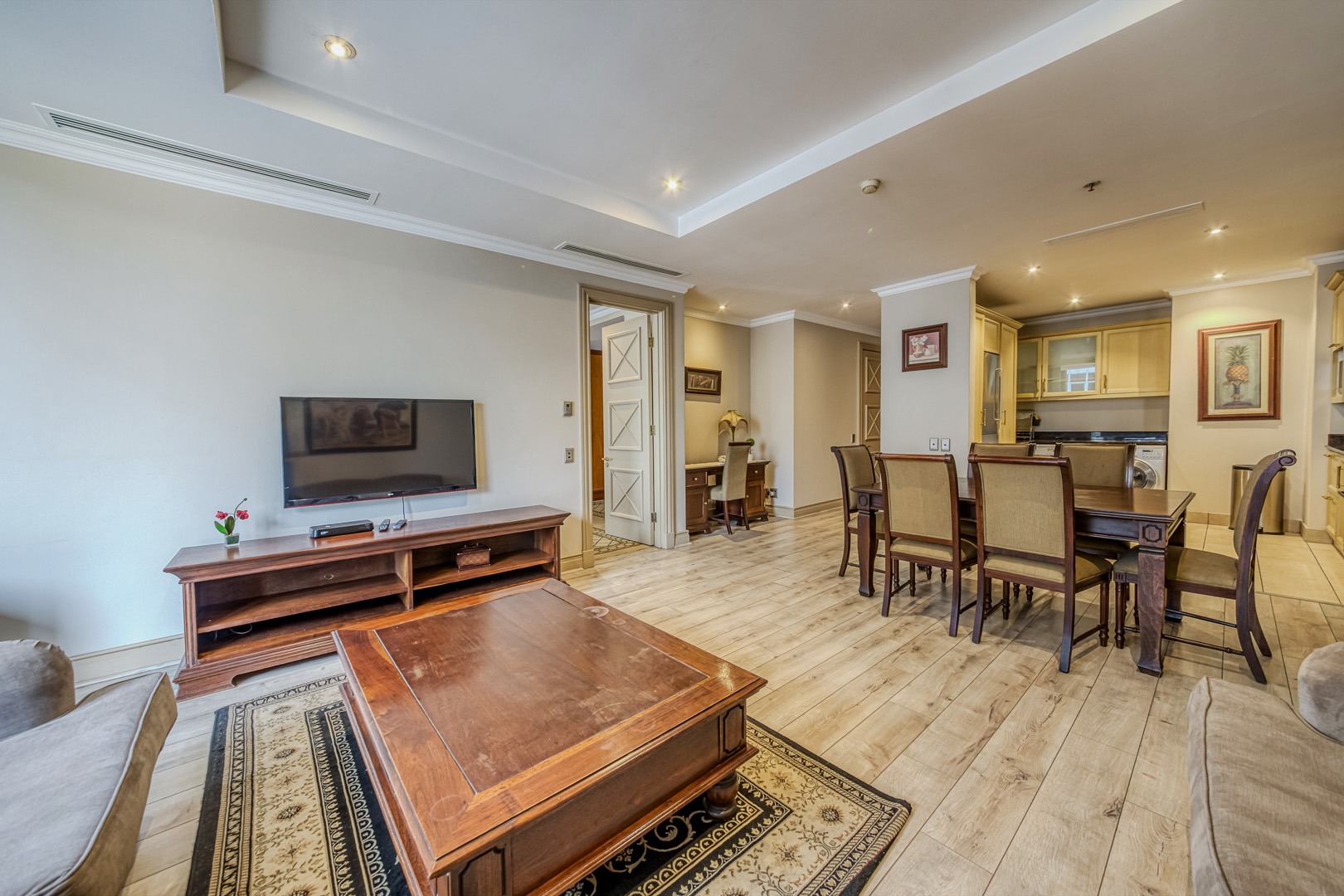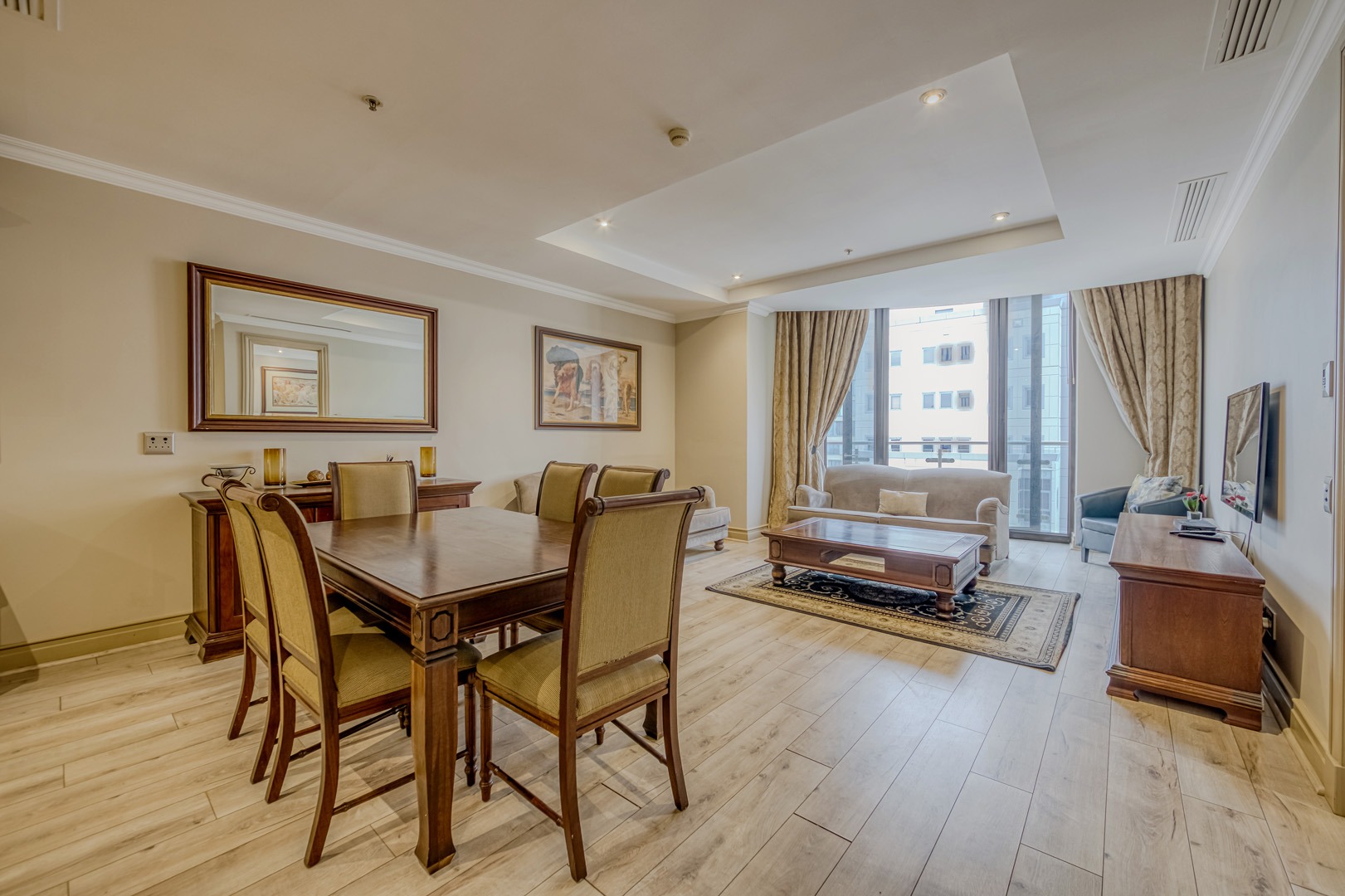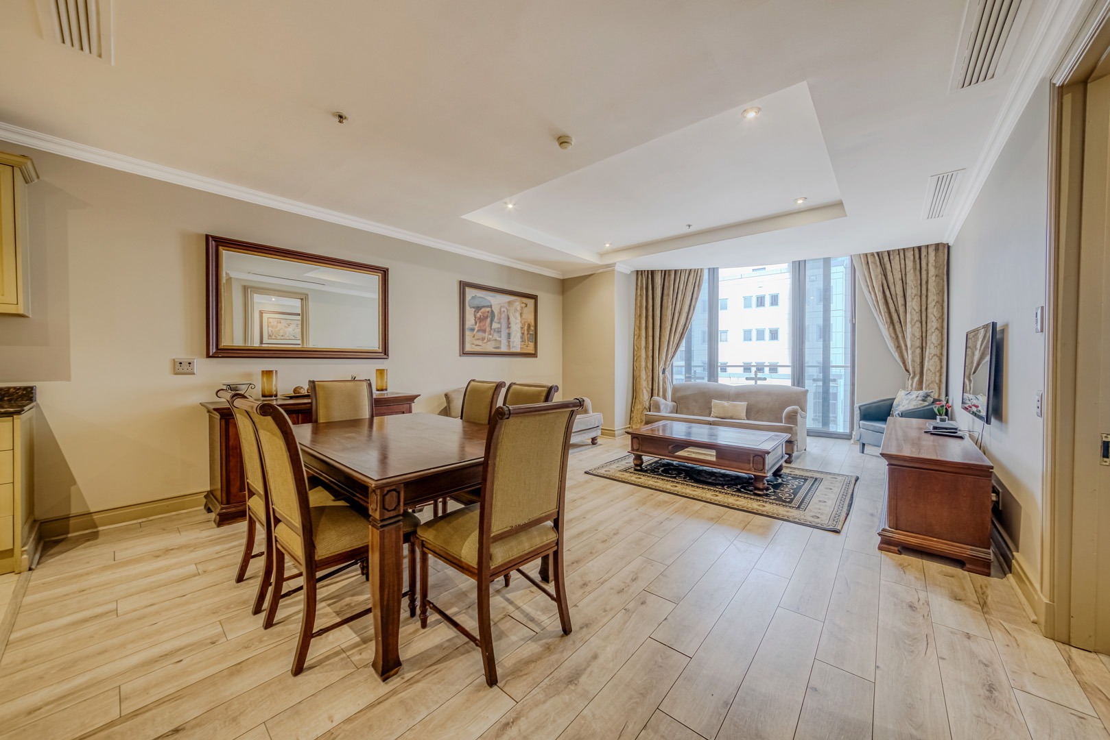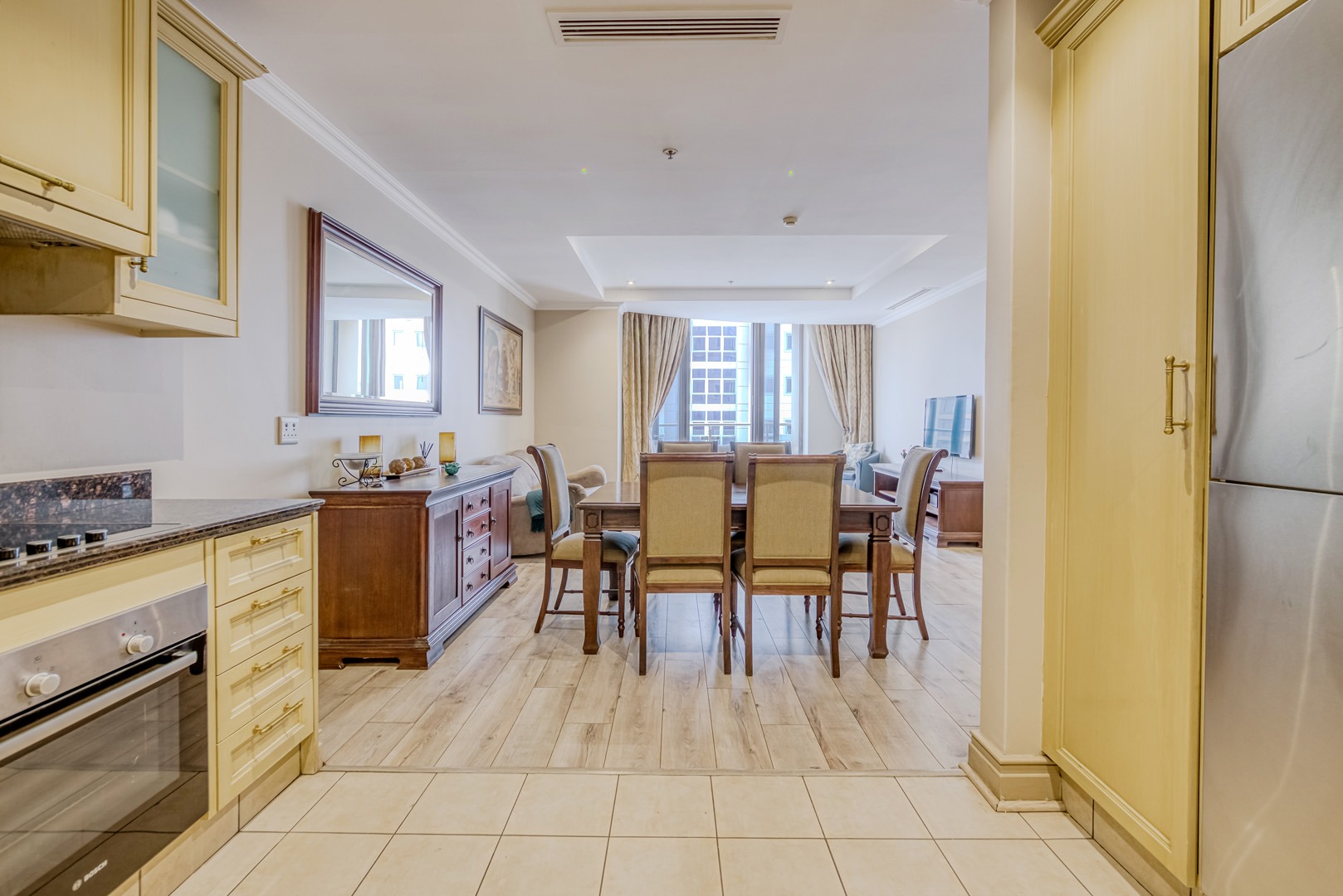 - Modern open-plan lounge and dining area, beautifully styled and fully furnished