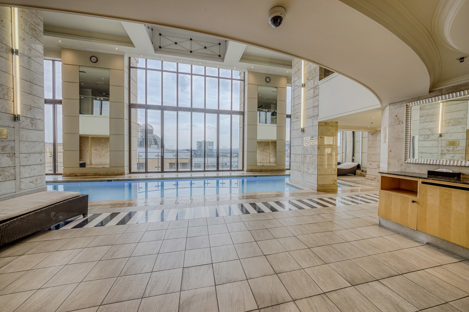 - Large windows showcasing spectacular views of the Sandton city lights, creating a magical backdrop day and night