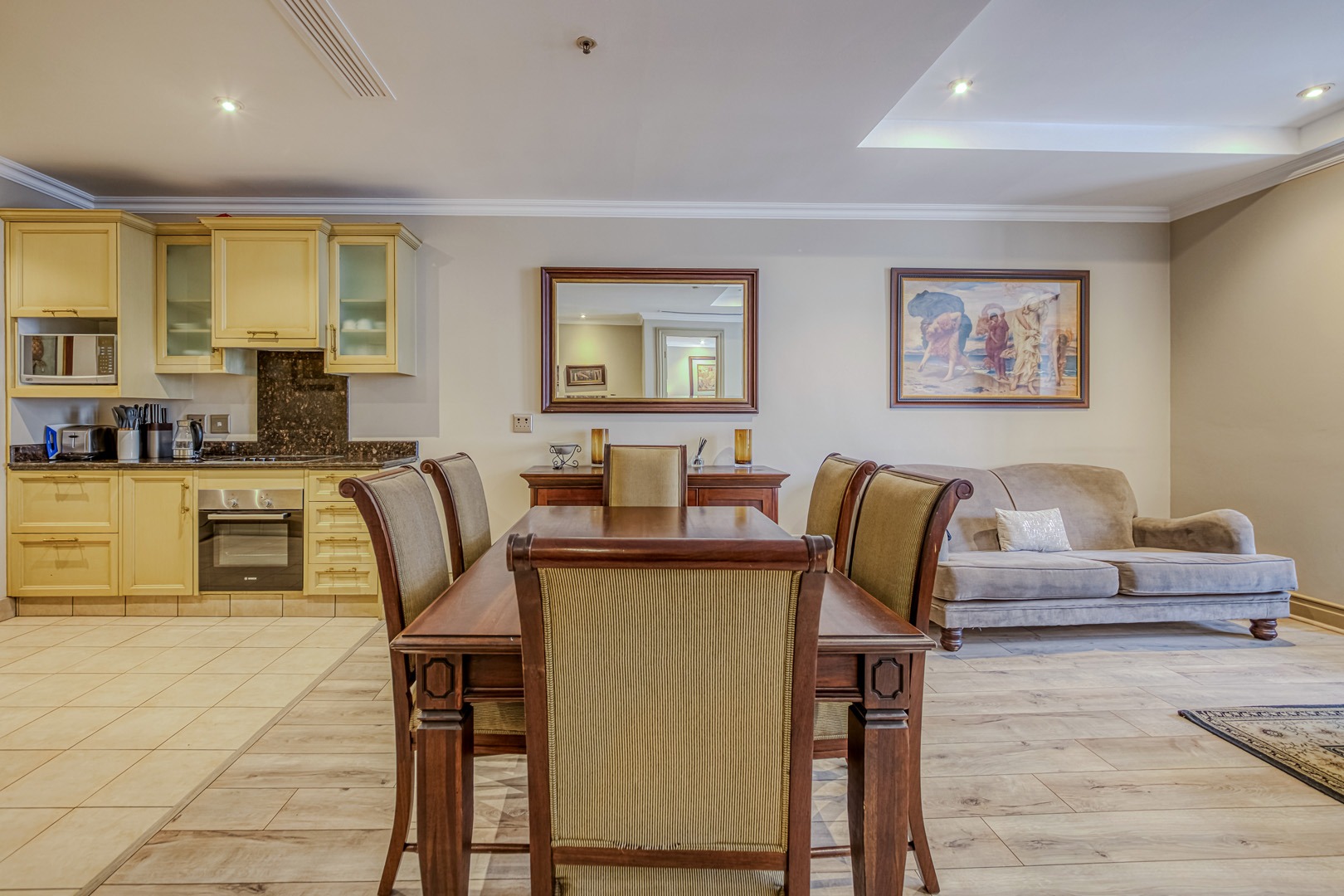 - Modern open-plan lounge and dining area, beautifully styled and fully furnished