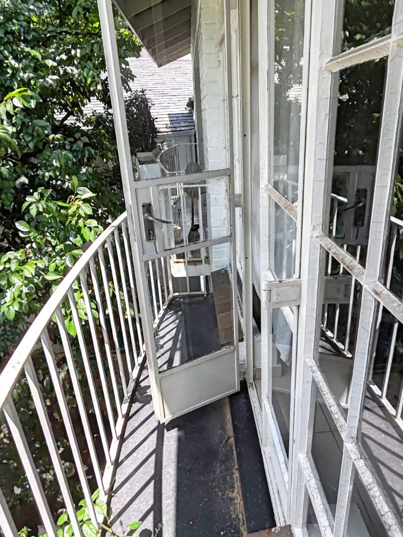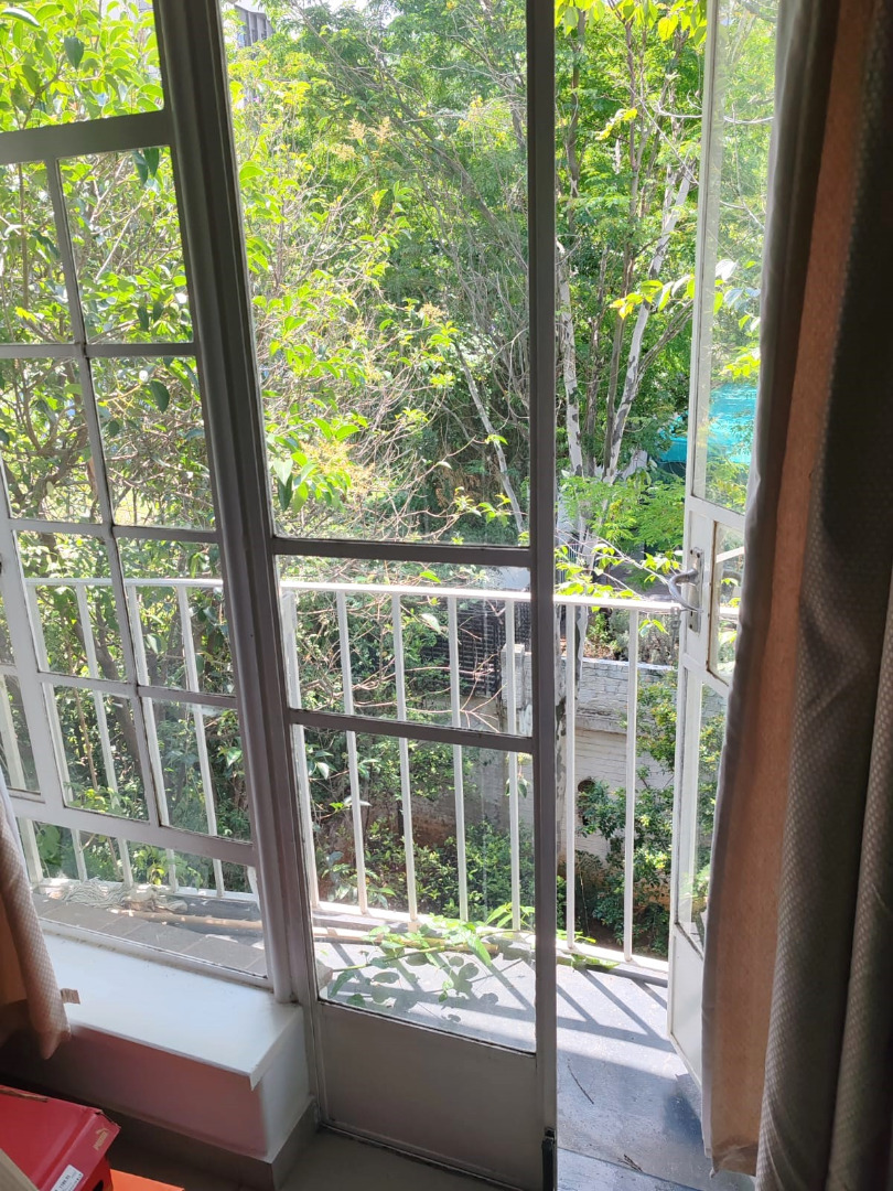 The roomy and bright living area leads onto a Romeo and Juliet balcony with a lovely view.